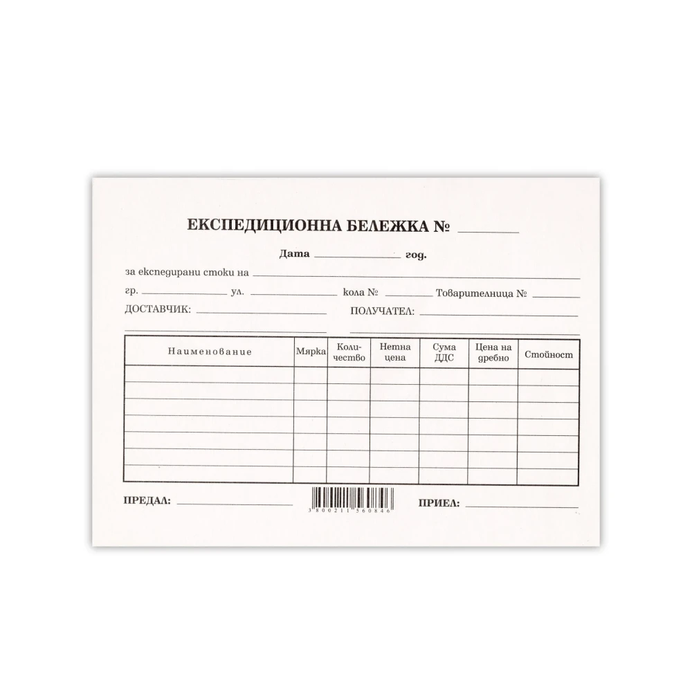 Експедиционна бележка, 100 листа