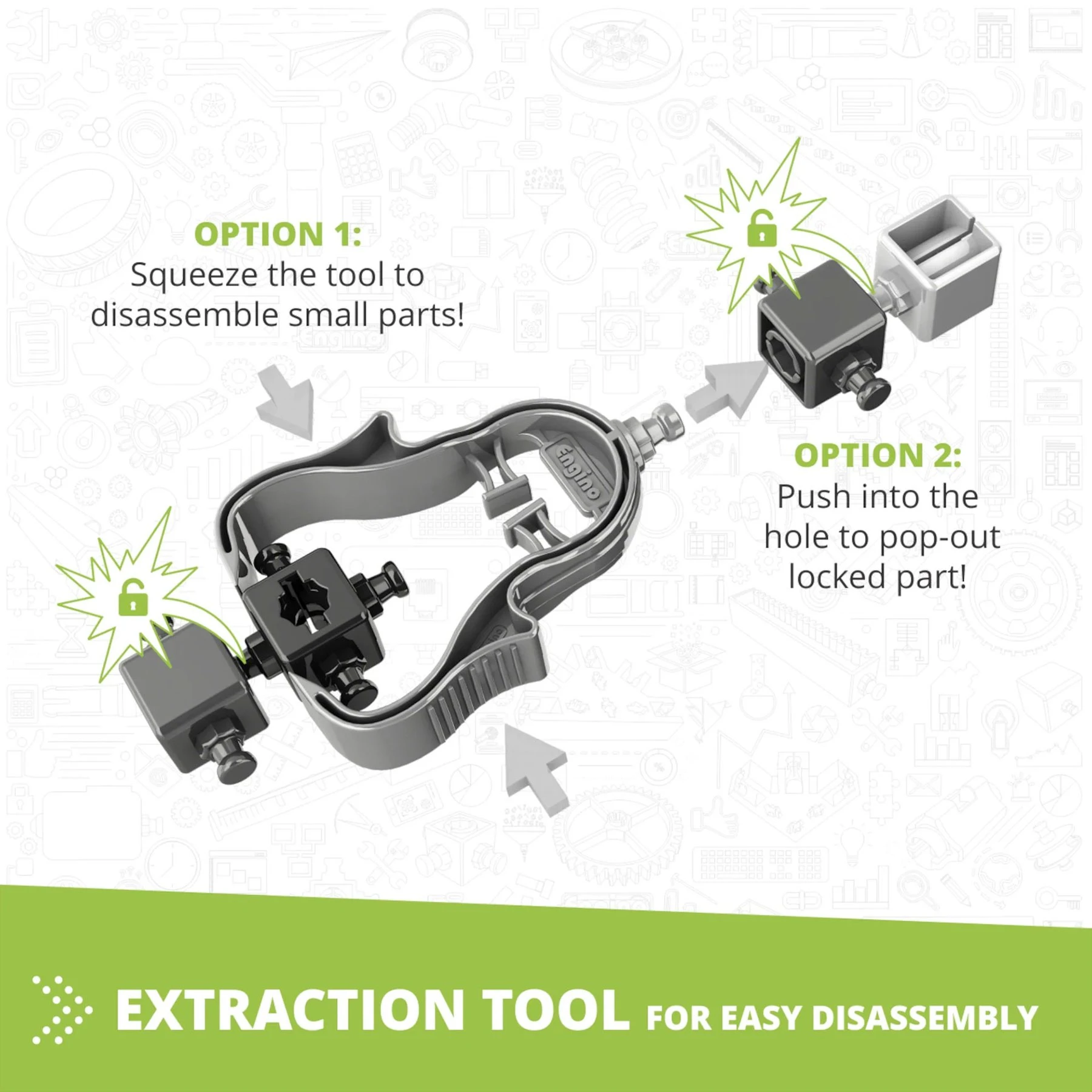 Младите автомобилни инженери ще изучават ключови принципи на STEM (наука, технологии, инженерство и математика), докато запълват детските си гаражи Engino с до 15 свръхмощни автомобила, които ще трябва да създадат от нулата! Този мултимоделен конструктор, с 15 модела, включва печатни и онлайн инструкции за построяване на: бобкат, триколка, кабриолет, самосвал, бъги, багер, космически кораб и още!