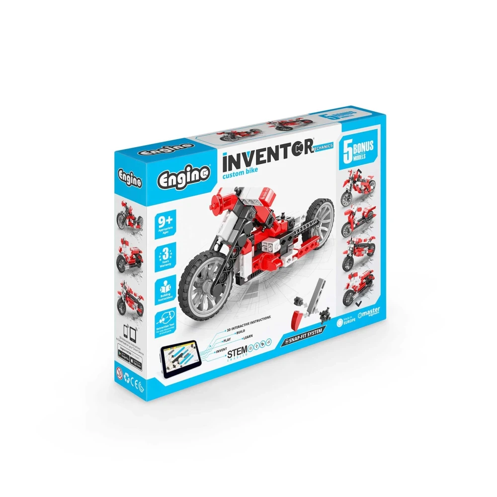 Младите автомобилни инженери ще изучават ключови принципи на STEM (наука, технологии, инженерство и математика), докато запълват детския си гараж Engino с атрактивни модели мотори и велосипеди, които ще трябва да конструират от нулата! Серията INVENTOR MECHANICS има тематичен подход с възможности за множество модели, включващи впечатляващ основен модел.