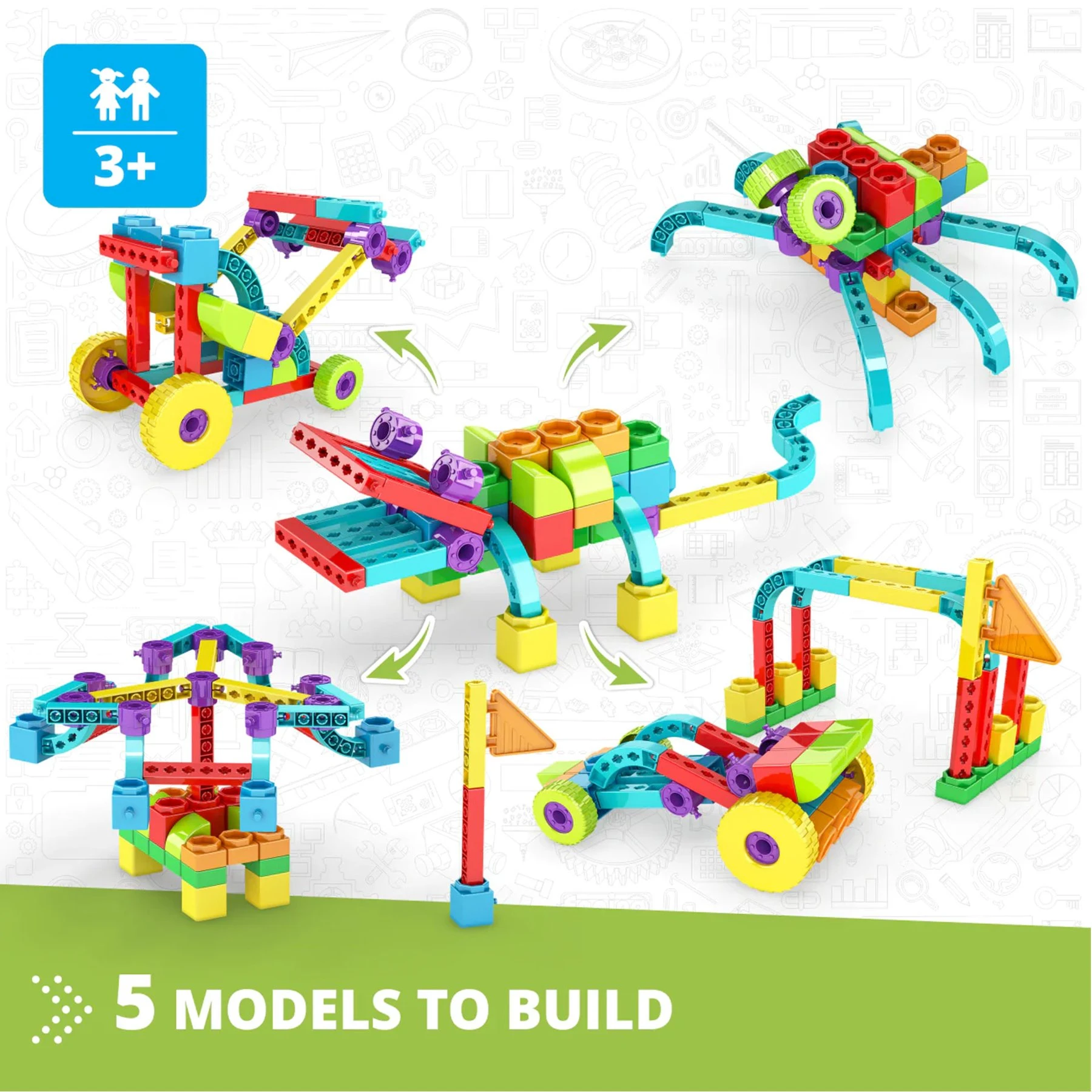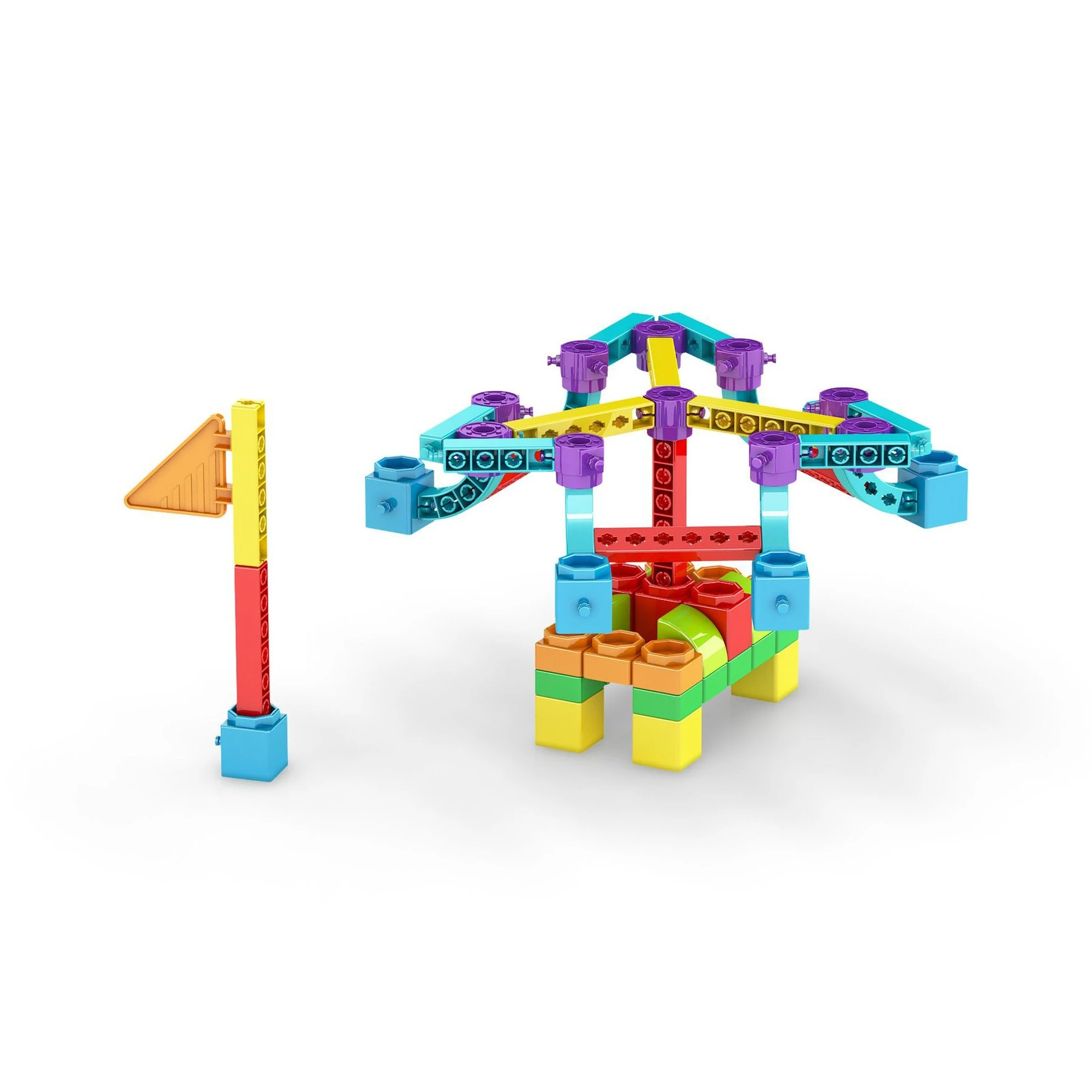 Със своите ярки цветове и лесни за използване блокове, този комплект предоставя забавен и увлекателен начин за децата да творят и конструират.