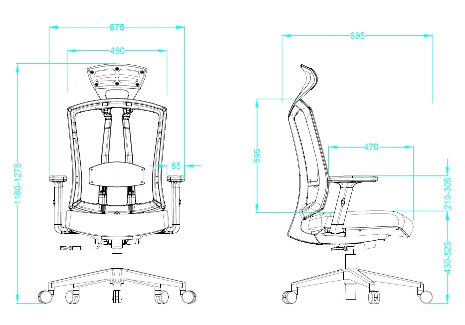 Висококачествена текстилна дамаска на седалката и дишаща мрежеста облегалка.