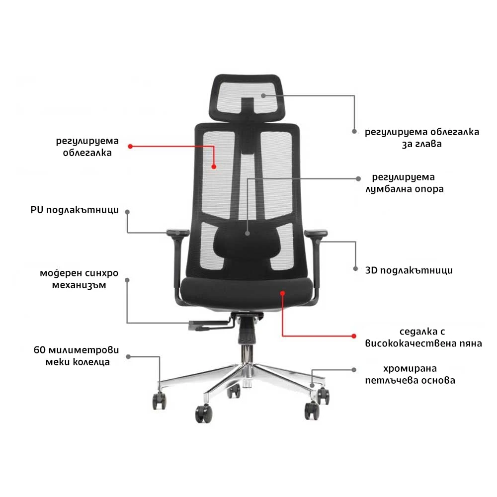 Столът предлага функция за регулиране на височината и наклона на опората за глава. Това ще ви позволи да настроите стола според индивидуалните си потребности.