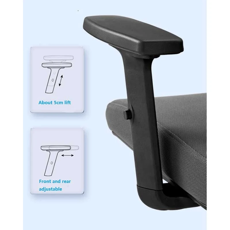 Столът е проектиран със специални 3D подлакътници, за да осигури максимален комфорт и свобода на ръцете и раменете Ви. Те предлагат комбинация от 3 ценни ергономични характеристики. Лесно можете да регулирате височината, дълбочината, както и позицията на падовете. При по-продължителна работа на компютър трябва да помислите за тези важни функционалности и да намалите напрежението в ръцете си, като откриете отличната позиция за тях.