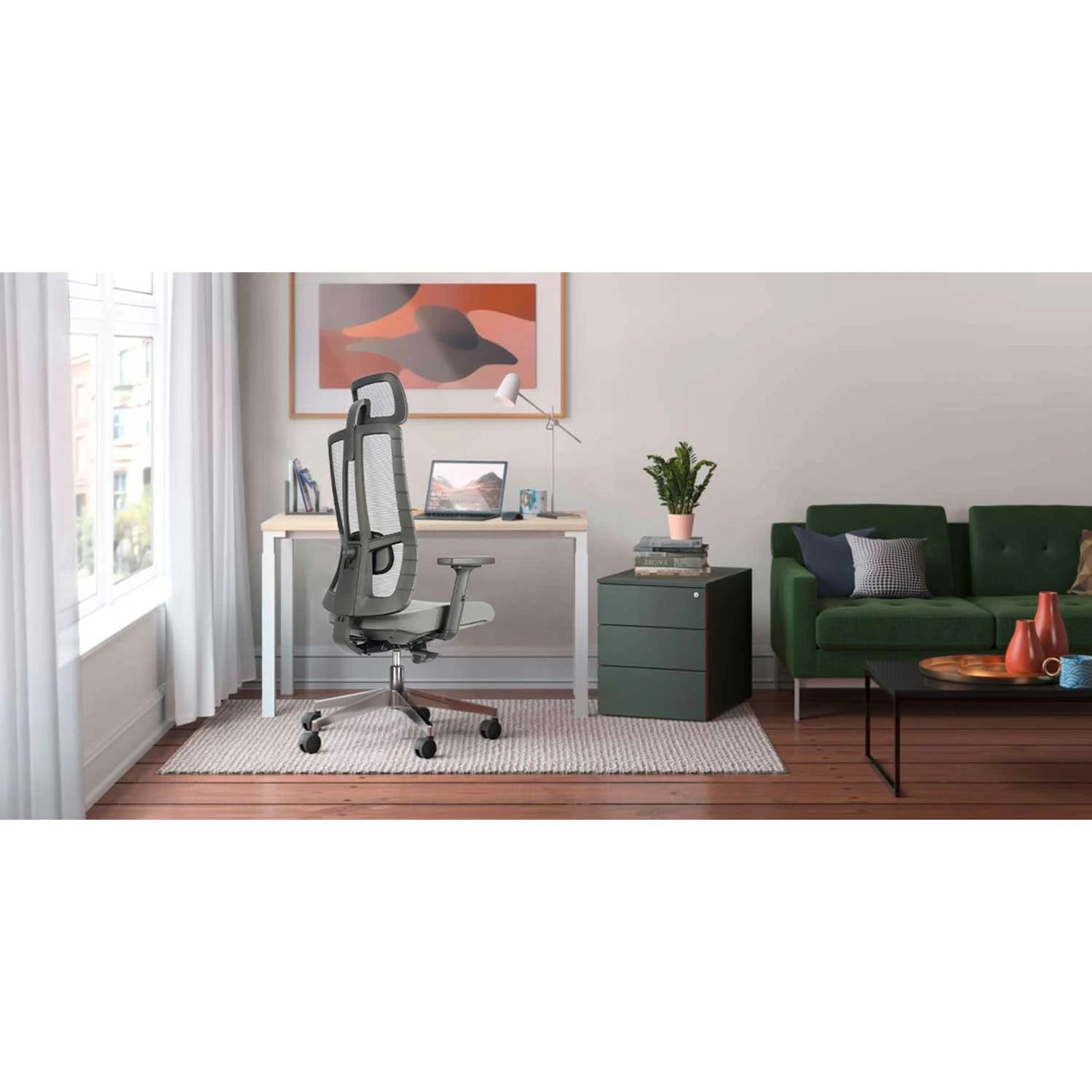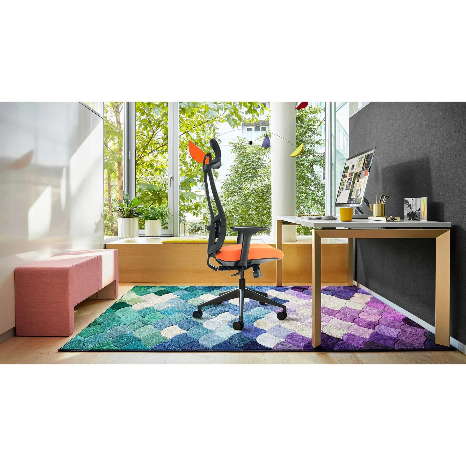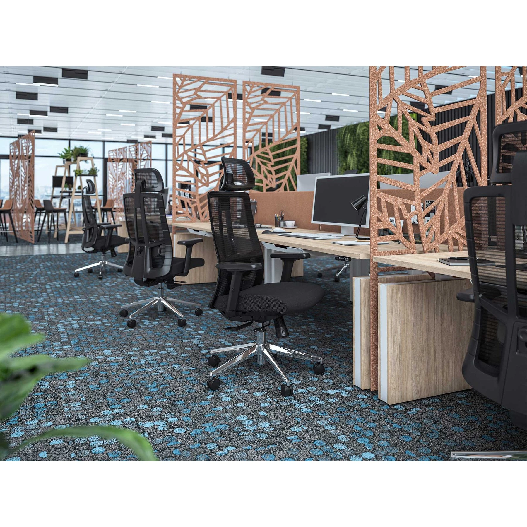 Елегантната оребрена черна рамка допълва цялостната визия на стола и го прави чудесен избор за работната среда.