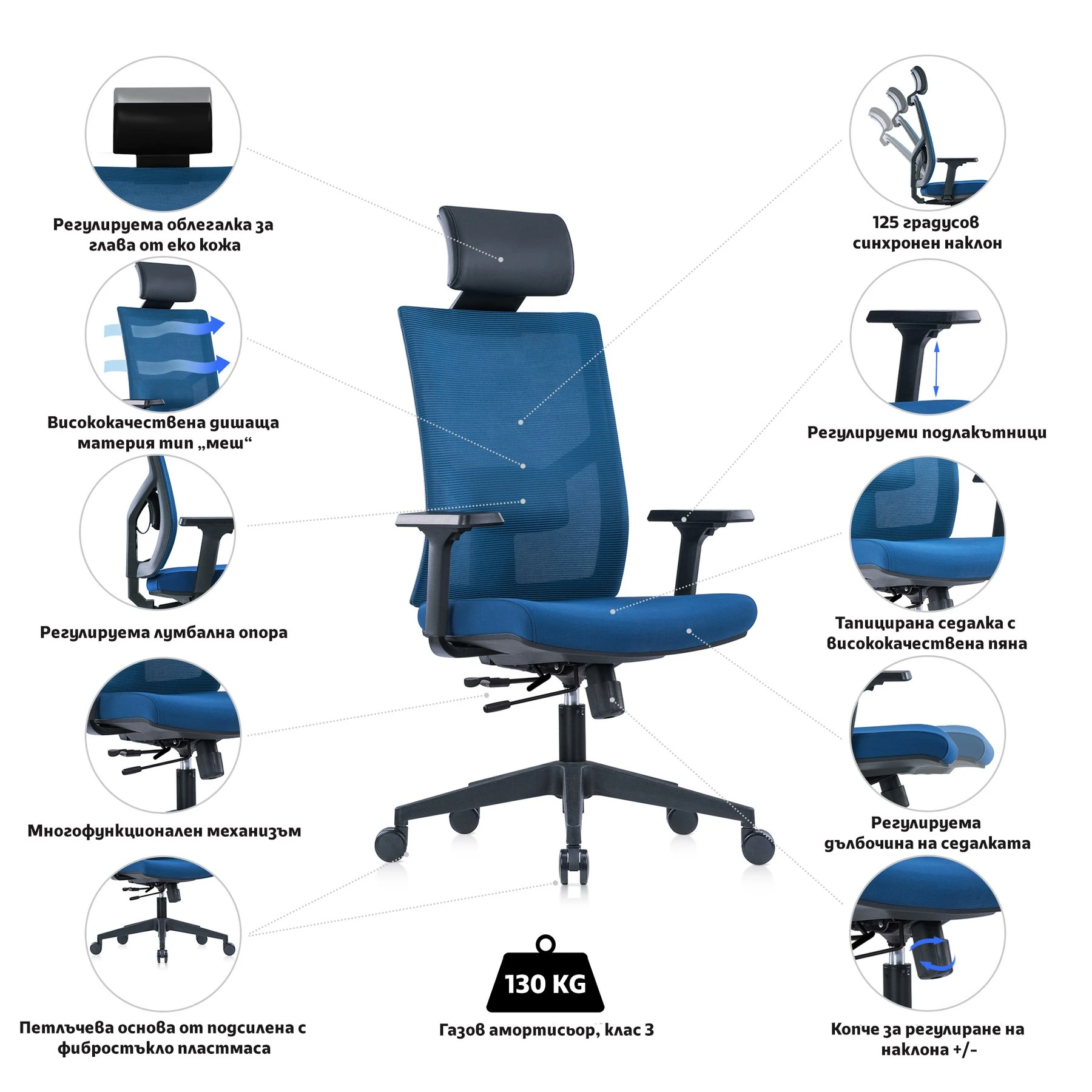 Цвят на облегалката: тъмносин.