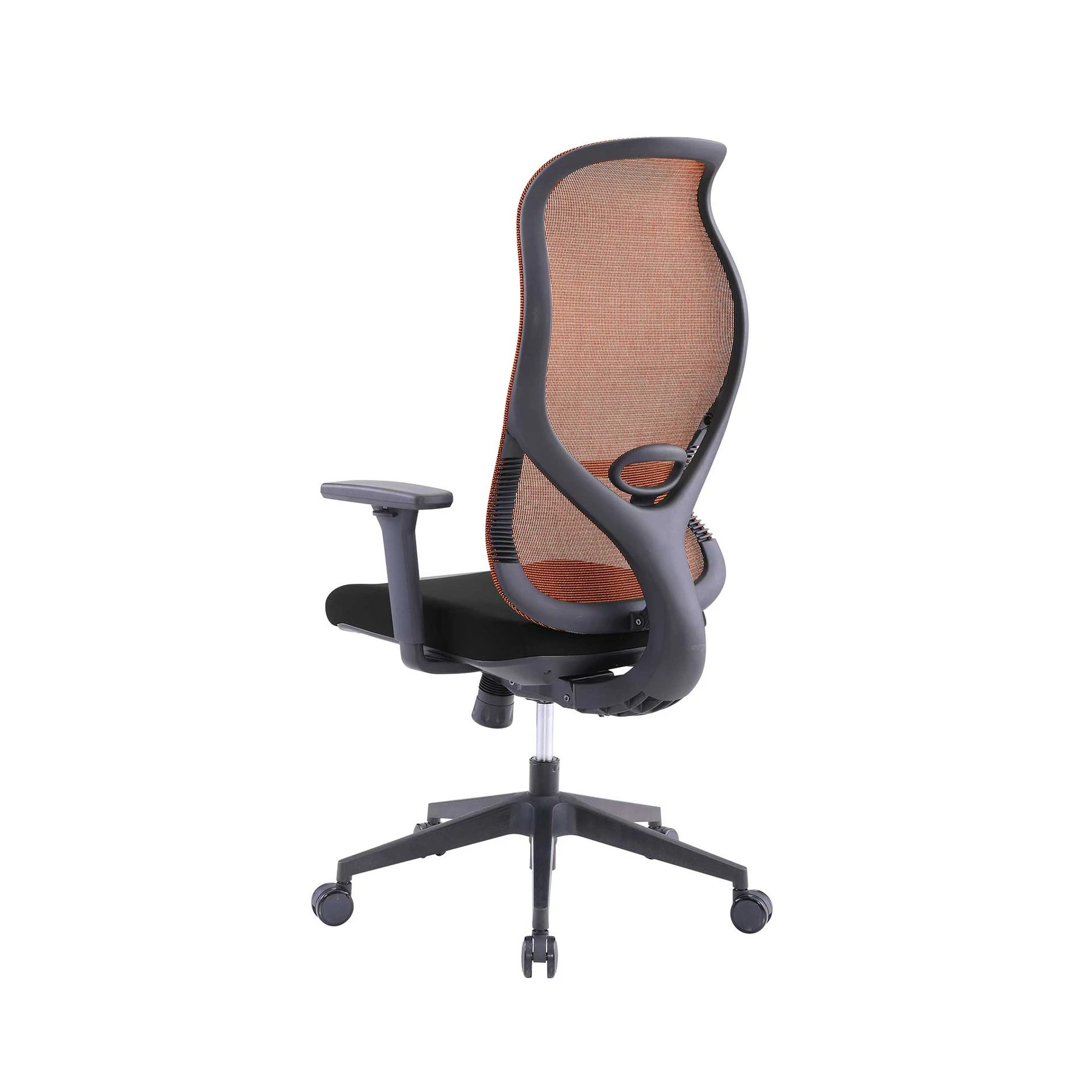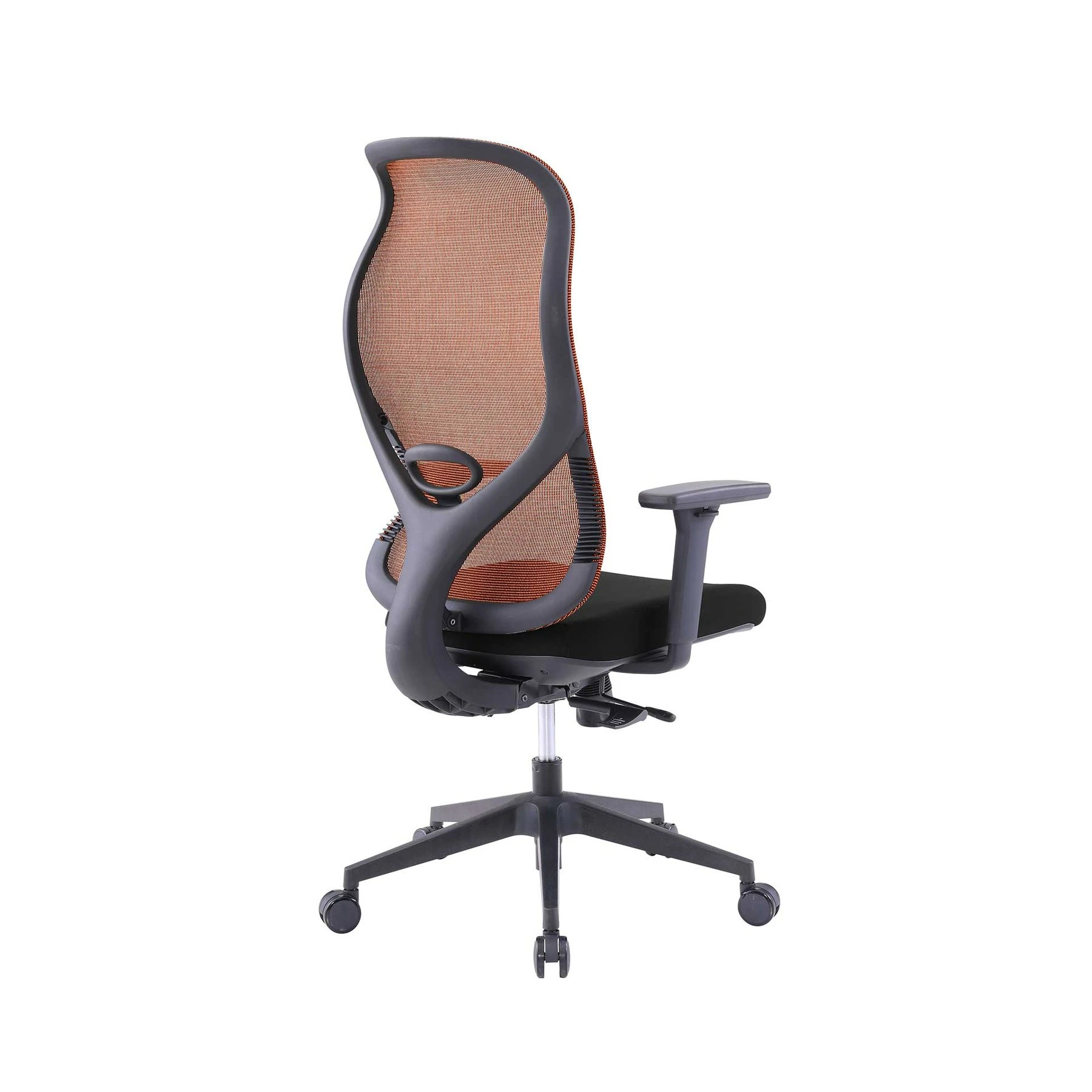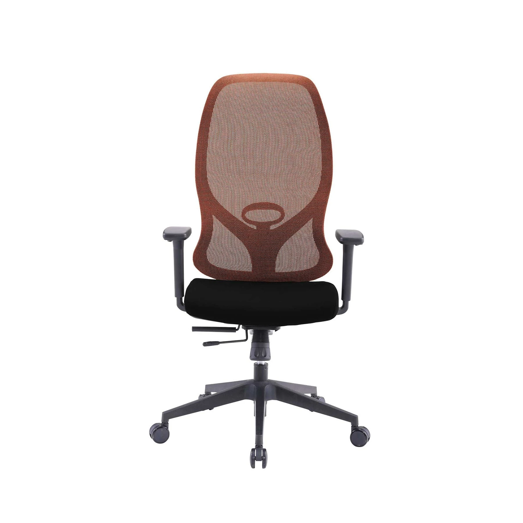 Ергономичен стол RFG STAR HB, дамаска и меш, Synchronous механизъм, до 150 kg, черна седалка, оранжева облегалка