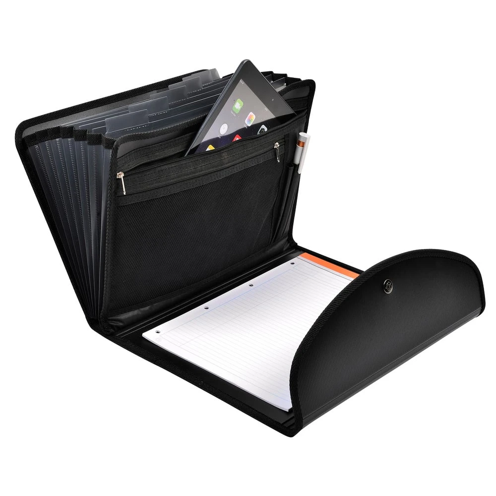 Разполага с 6 отделения и персонализирани етикети за всяко от тях и подложка за писане.