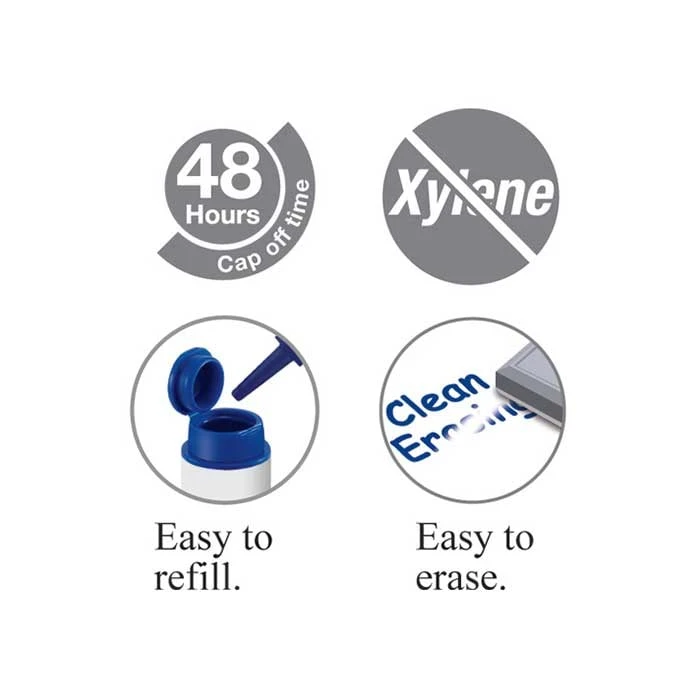 Презареждащ се борд маркер за бяла дъска с объл връх и широчина на линията на писане около 2 mm.