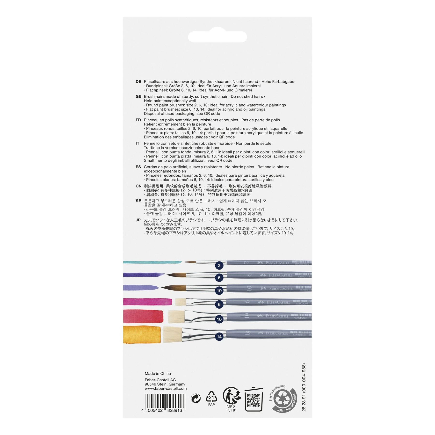 Комплектът включва: - Три кръгли четки за рисуване с размери 2, 6 и 10. Идеални за акрилни и акварелни рисунки. - Три плоски четки за рисуване с размери 6, 10 и 14. Идеални за акрилни и маслени картини.