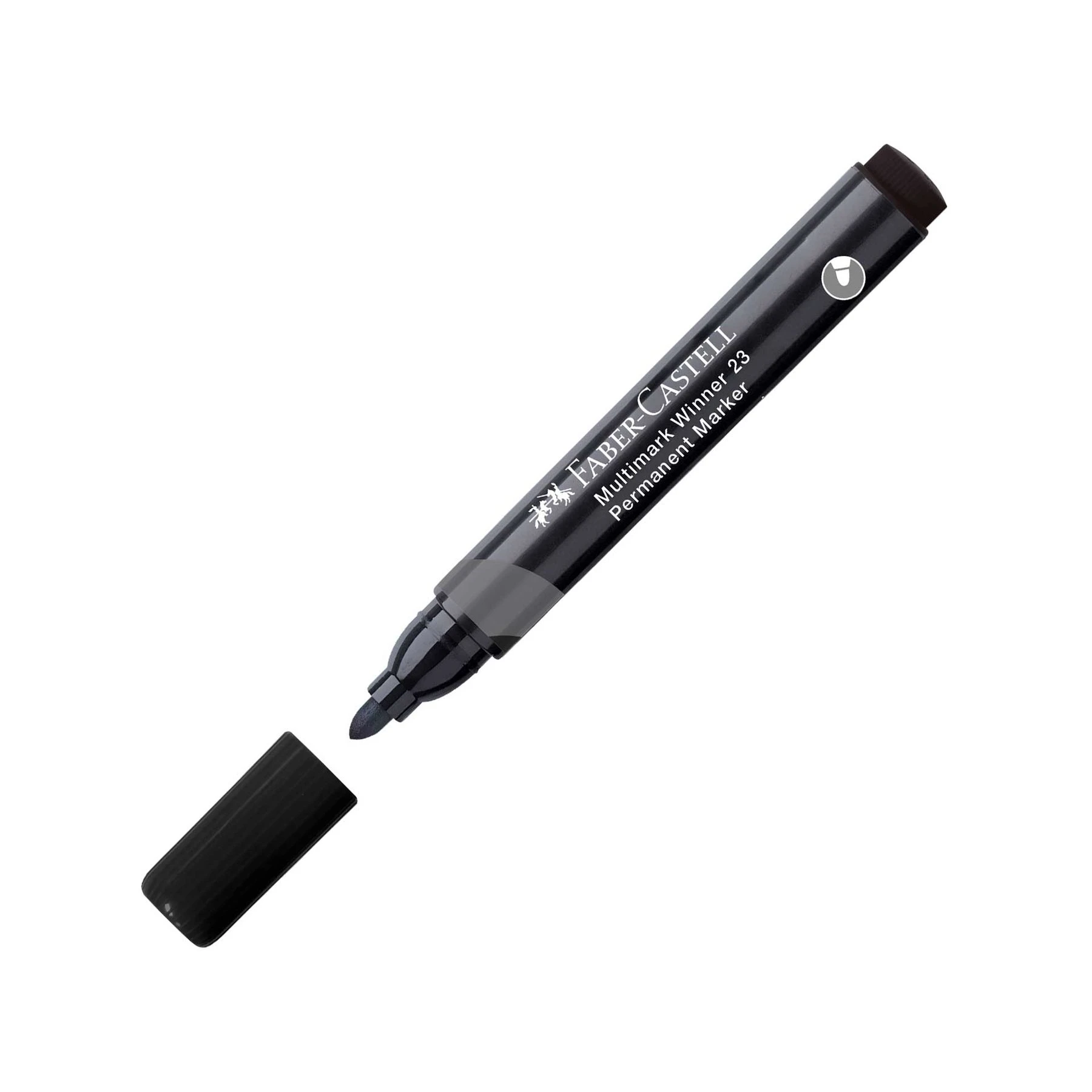 Перманентен маркер, подходящ за нанасяне върху гладки повърхности, като стъкло, дърво, метал или картон. Тялото и капачките са изработени от полипропилен (PP), който предпазва мастилото от бързо изсъхване, и затова маркерите и флумастерите на Faber-Castell са годни за употреба с години.