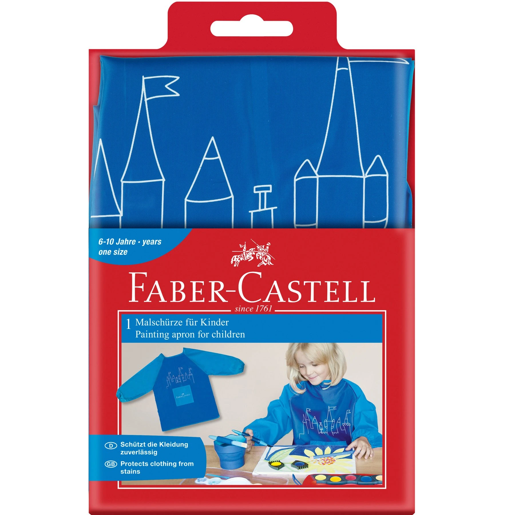 Детска престилка за рисуване с дълги ръкави за училище и свободното време. Оптимална защита от лепило, боя и други течности. Еластични маншети за перфектно залепване и захващане на престилката. Универсален размер, подходящ за деца от 110 cm височина.