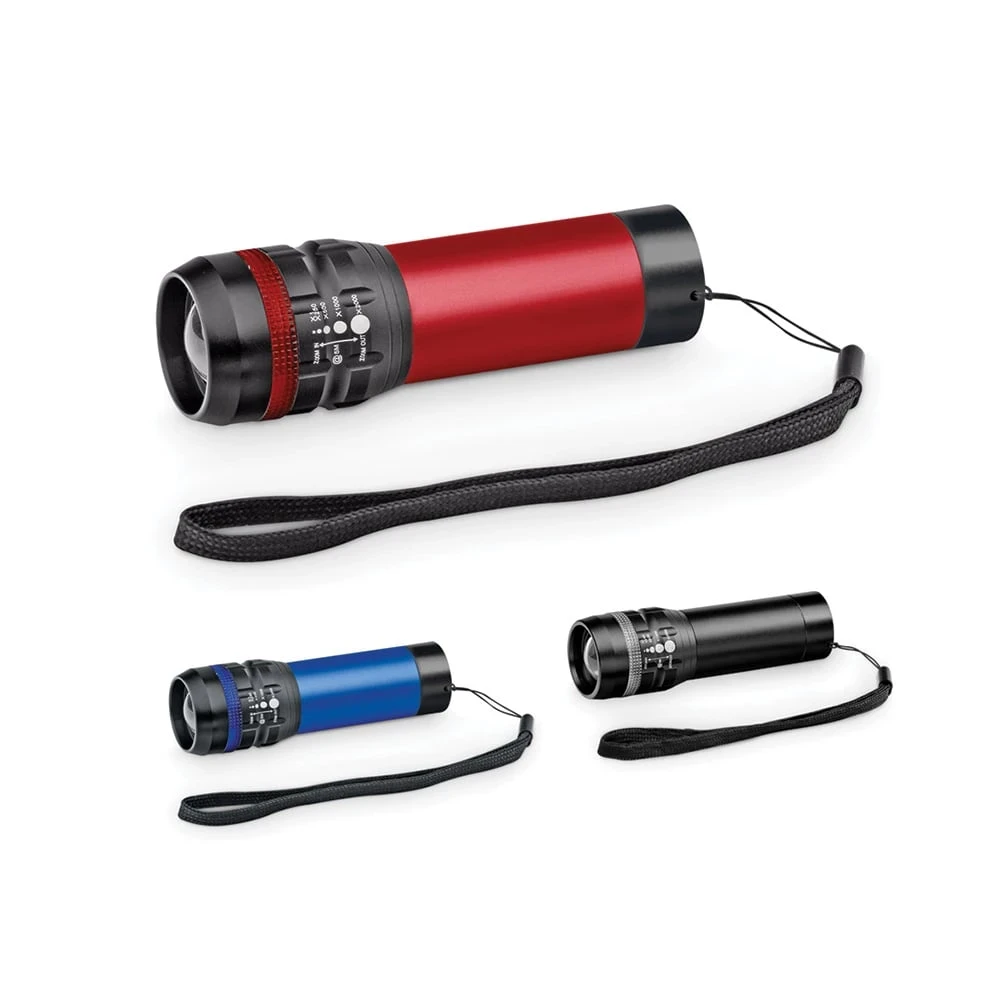 Алуминиево фенерче с функция за увеличение на светлинния лъч в 3 режима, 1 W LED лампа и дръжка.