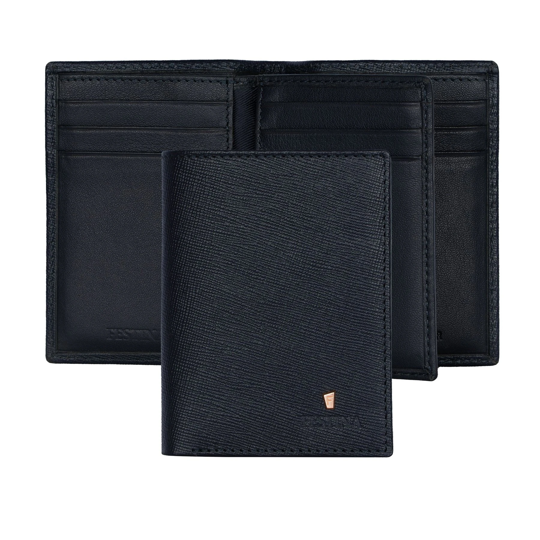 Серията "Chronobike" от дребни кожени изделия е изработена от внимателно подбрана естествена кожа с текстура на сафани. Тази тъмносиня версия е украсена с емблематичния буква F от логото на бранда във формата на трапец. Този портфейл за карти е изключително практичен, с 12 отделения за карти и две отделения в горната част.