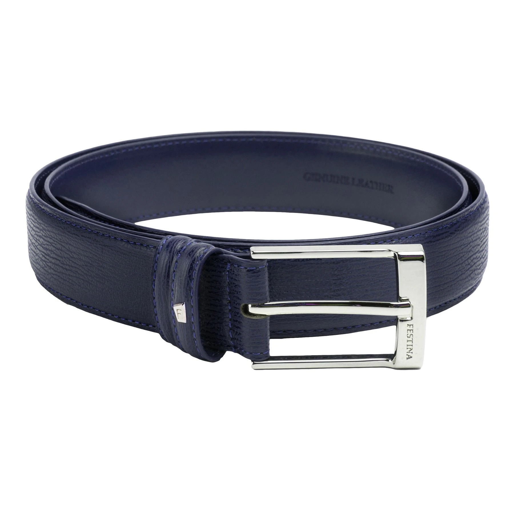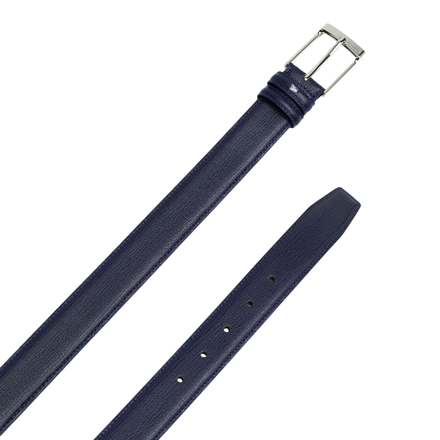 Кожата с красива текстура и фино изработената характерна F метална плоча дават финалния щрих на този колан.