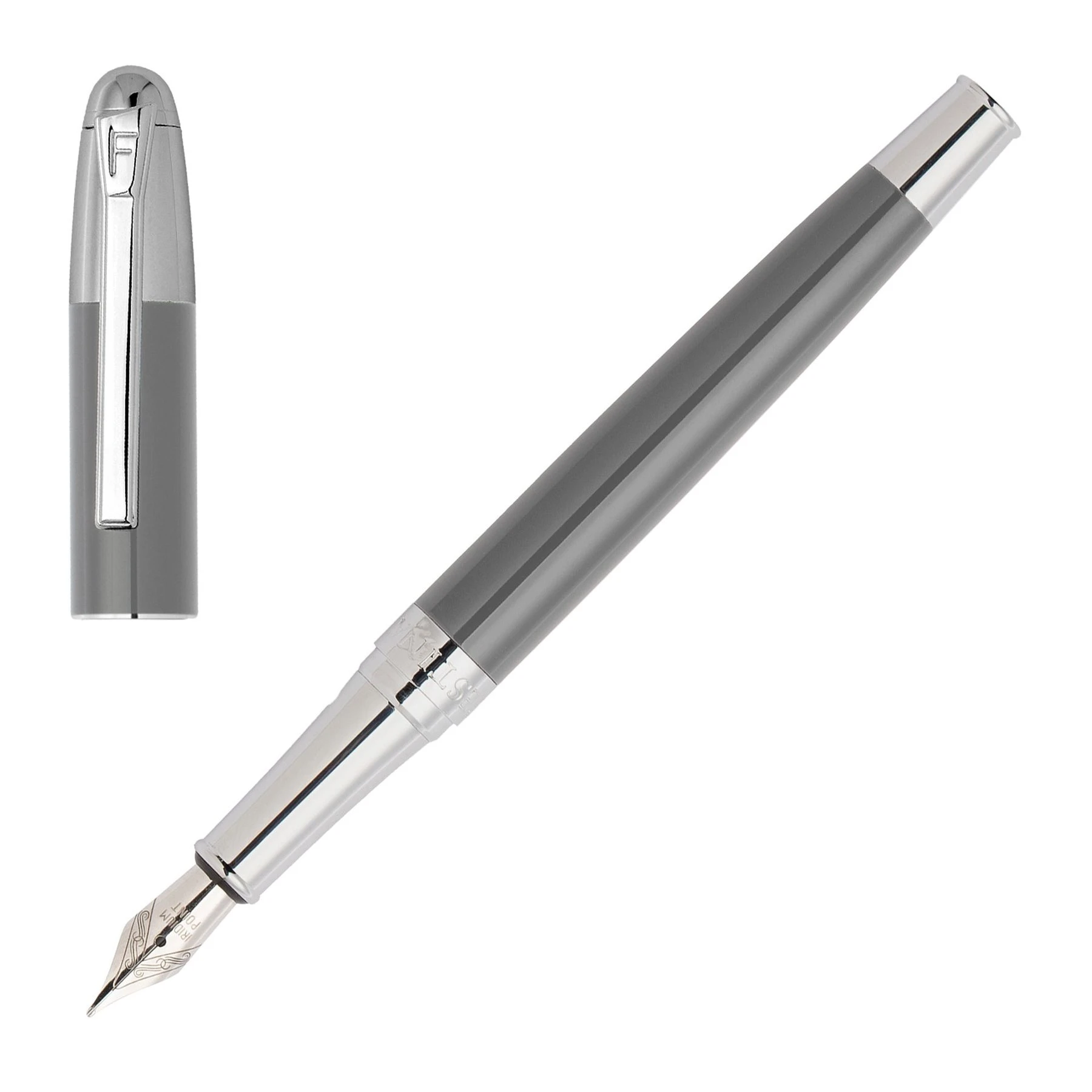 Класическата писалка олицетворява изисканост със своята лъскава и балансирана рамка. Този вечен дизайн контрастира със сияен сив лак и свежи хромирани метални акценти за завладяваща естетика.