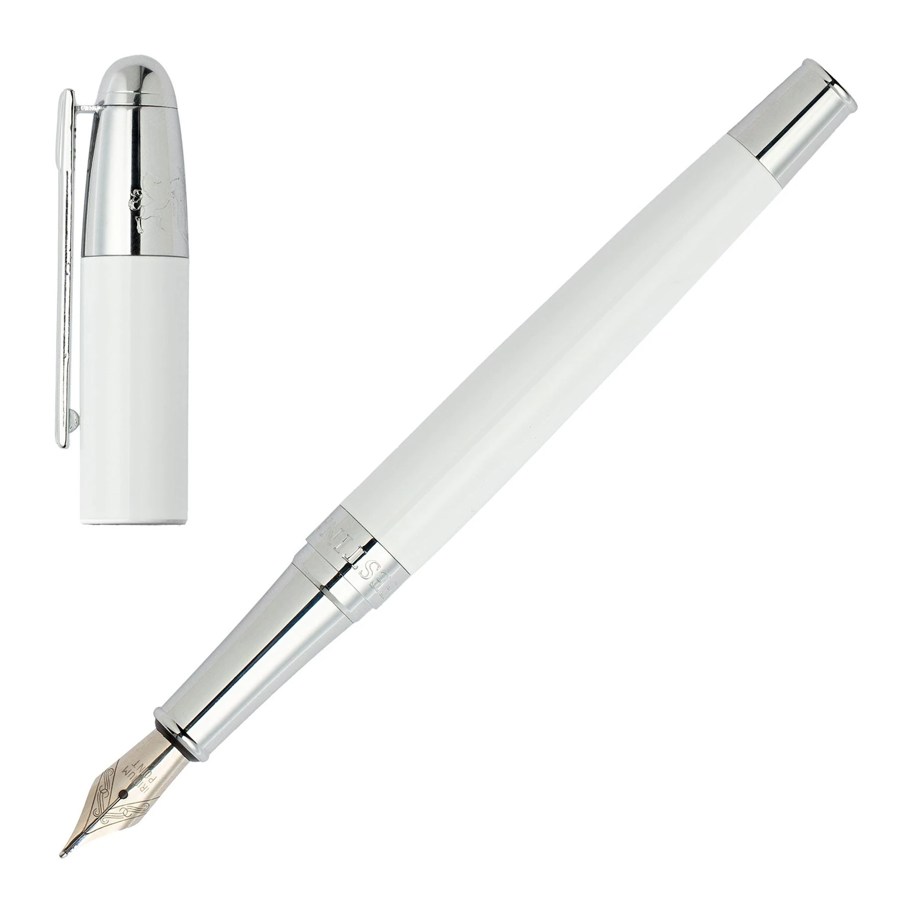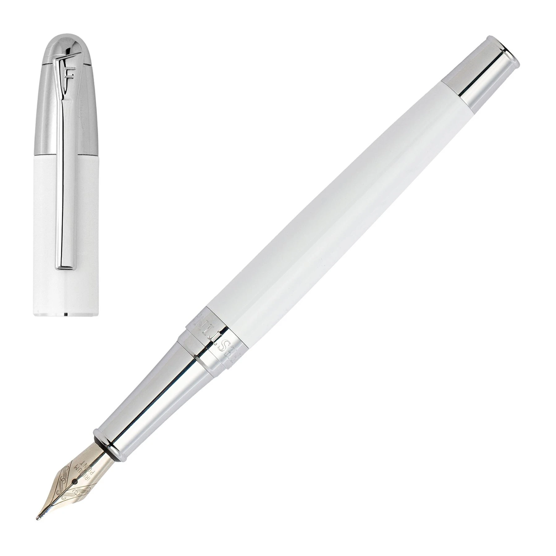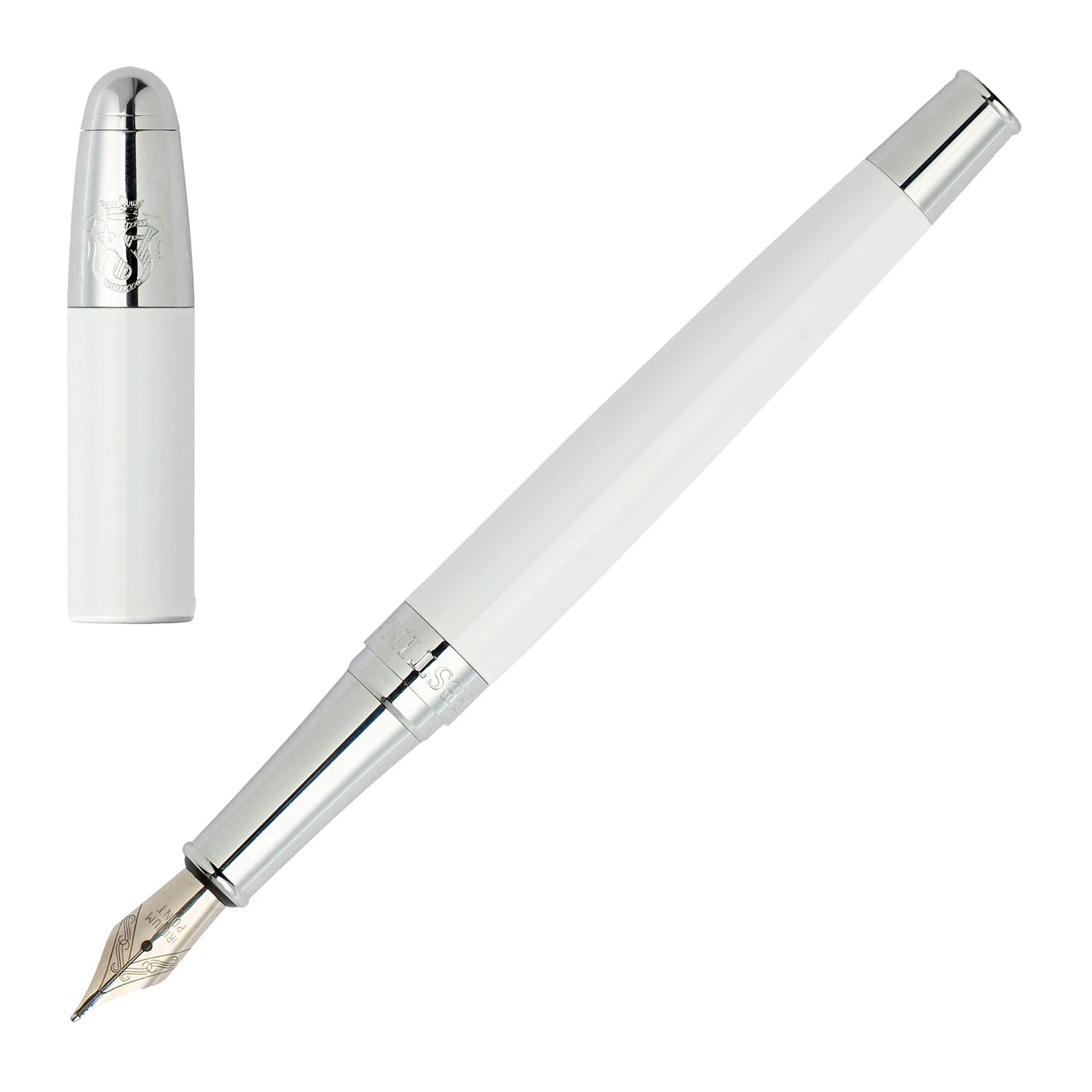 Класическата писалка олицетворява изисканост със своята лъскава и балансирана рамка. Този вечен дизайн контрастира със сияен сив лак и свежи хромирани метални акценти за завладяваща естетика.