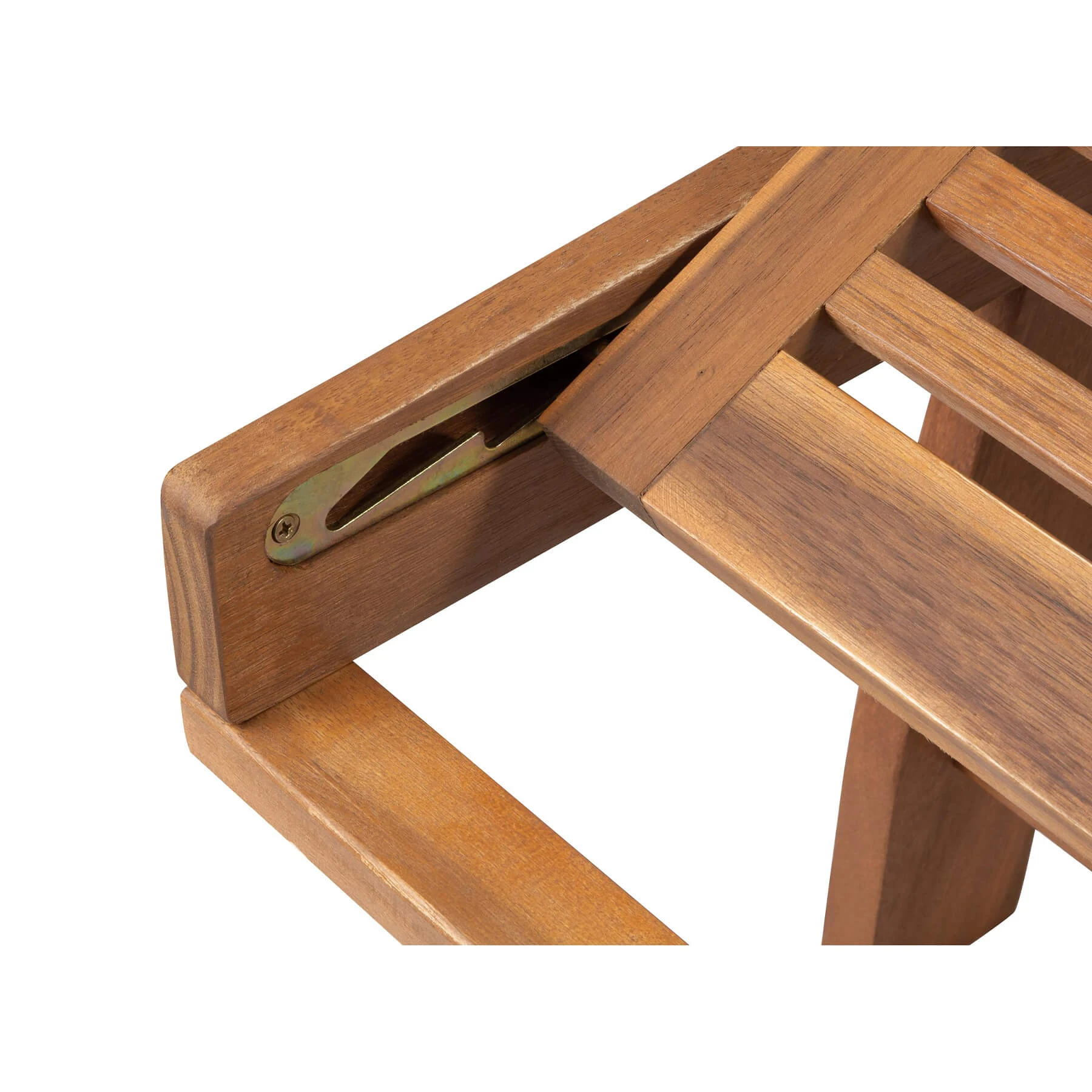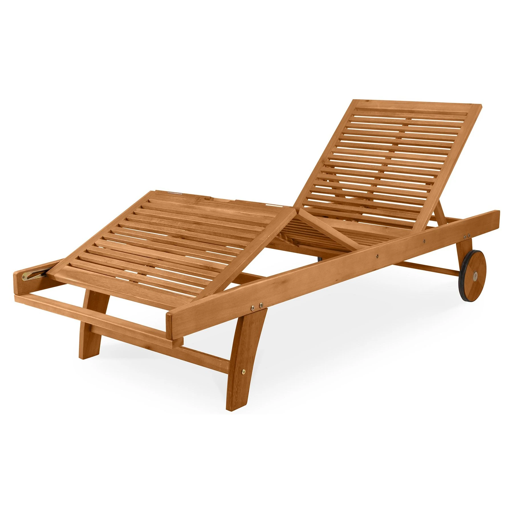 Класически градински шезлонг, изработен от дърво, устойчив на външни влияния.