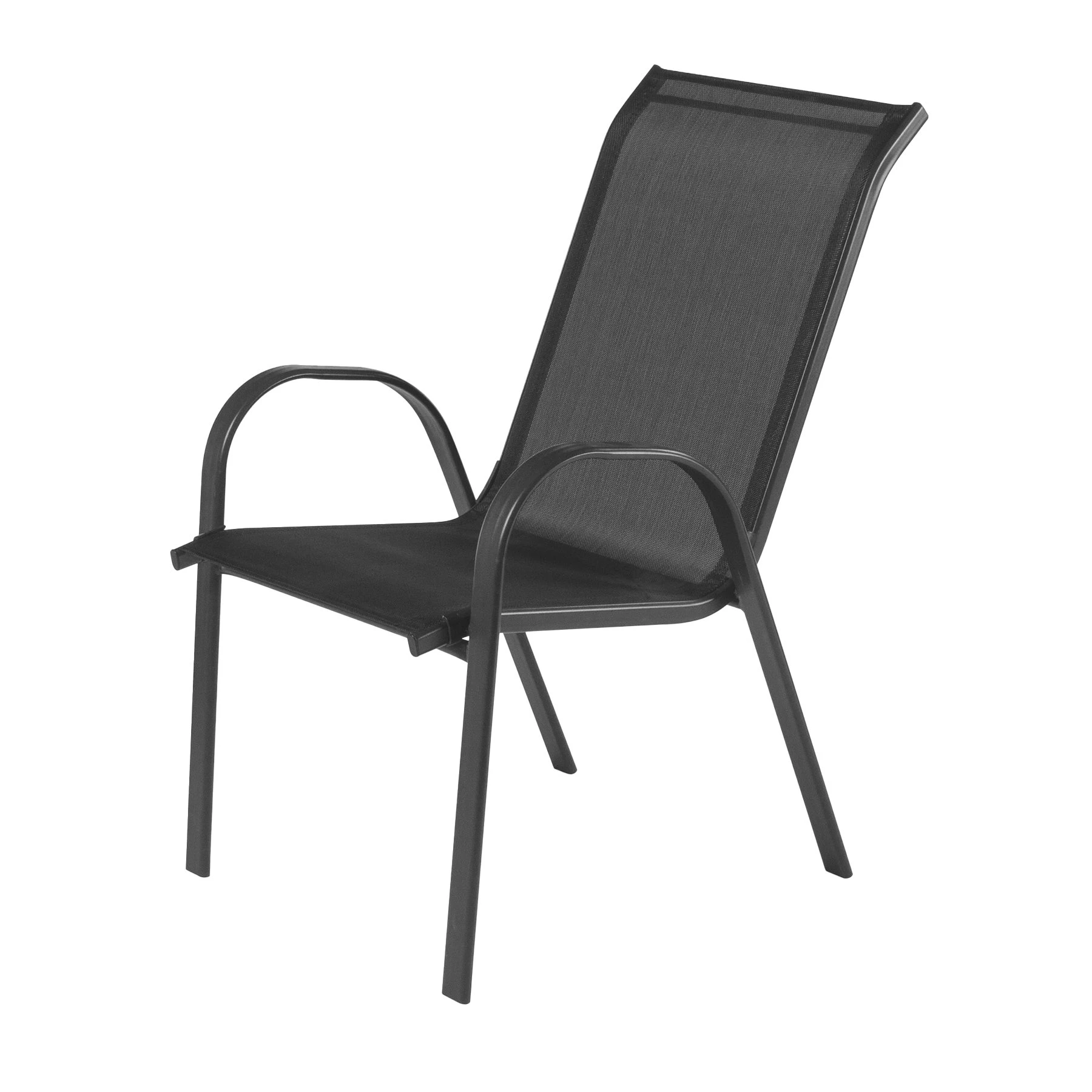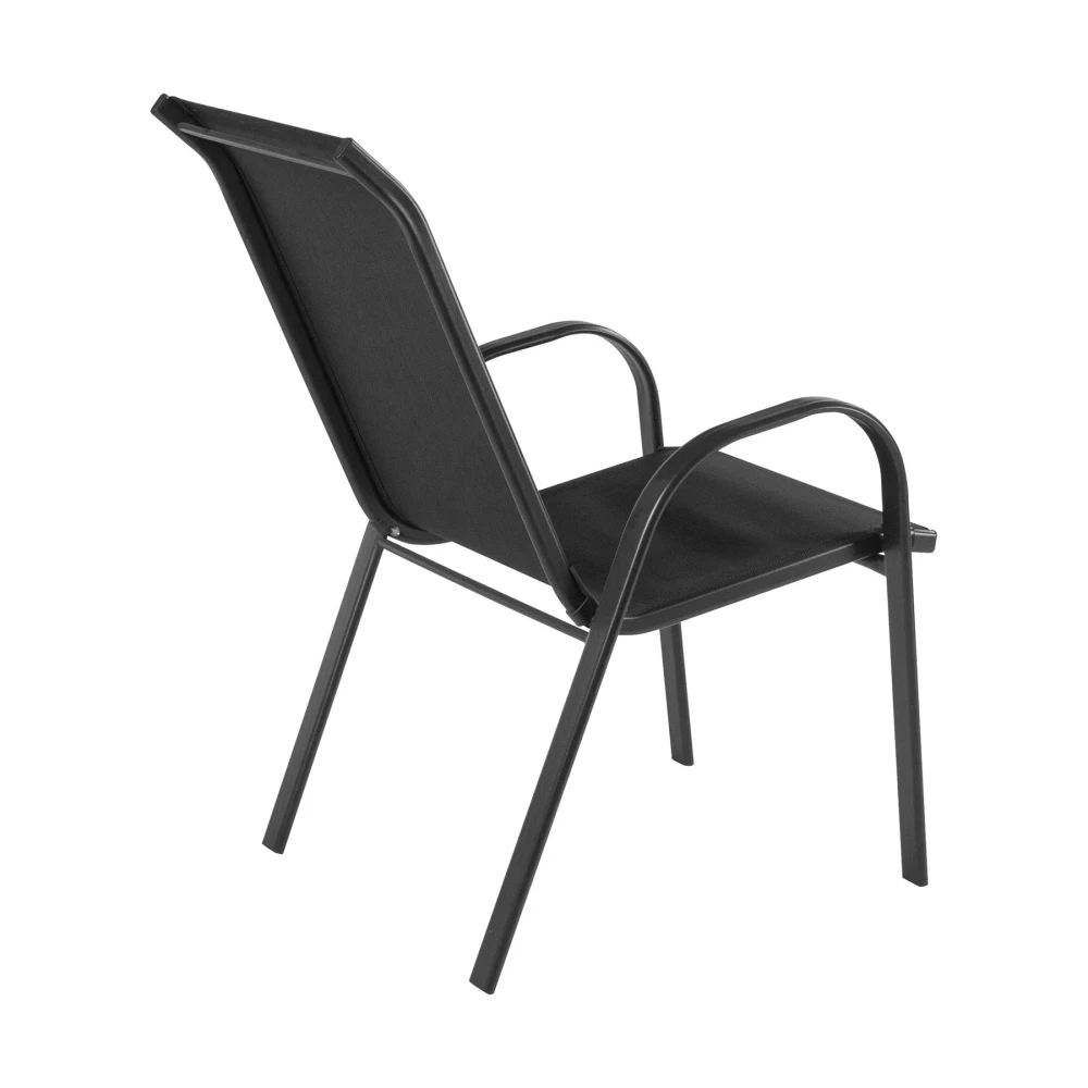 Класически градински стол с метална конструкция и текстилни гръб и седалка.