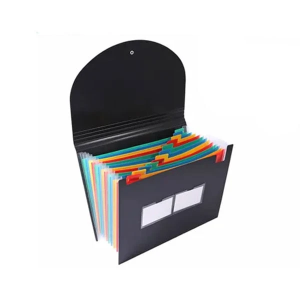 Практична разширяваща се папка с 13 отделения, предназначена за организация, съхранение и сортиране на документи, фактури, бележки и материали.