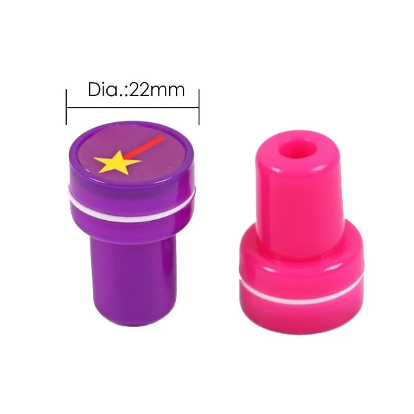 Комплект от 26 броя печати с различни мотиви - цветя, сърца, пеперуди, надписи и други. С тях може да се допълват детски рисунки или да се използват при декорация на картички, албуми, подаръци и други.