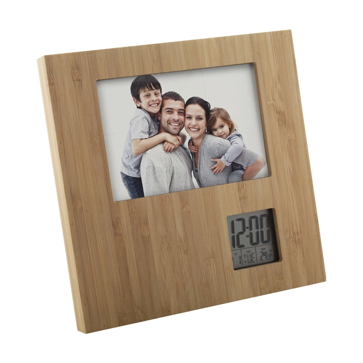 Бамбукова фоторамка с вградена метеостанция.
