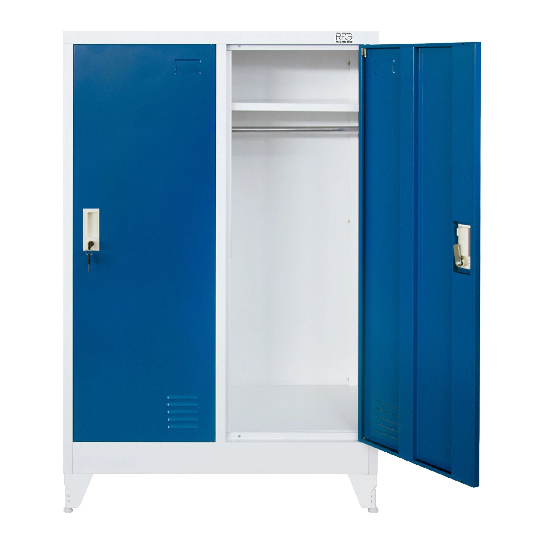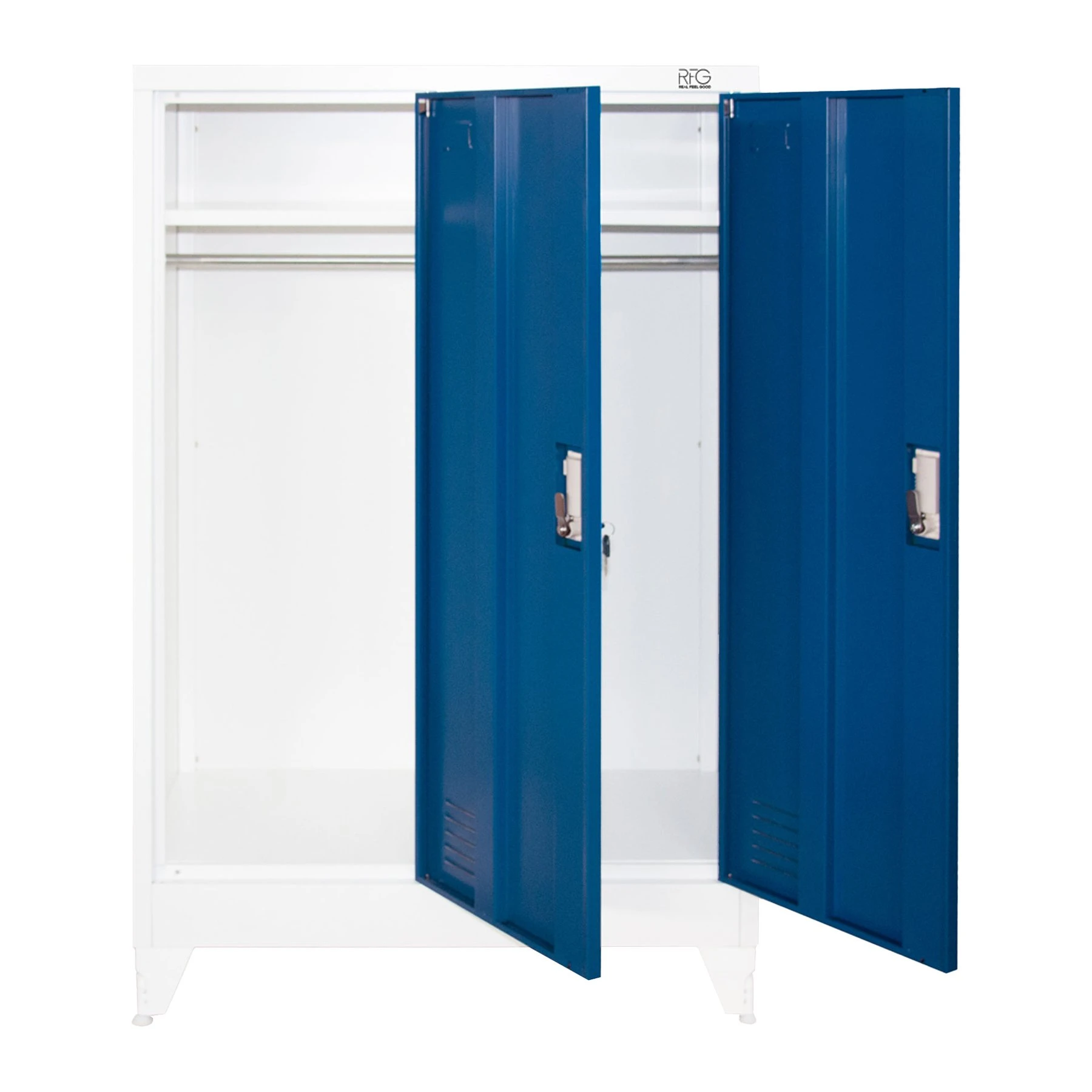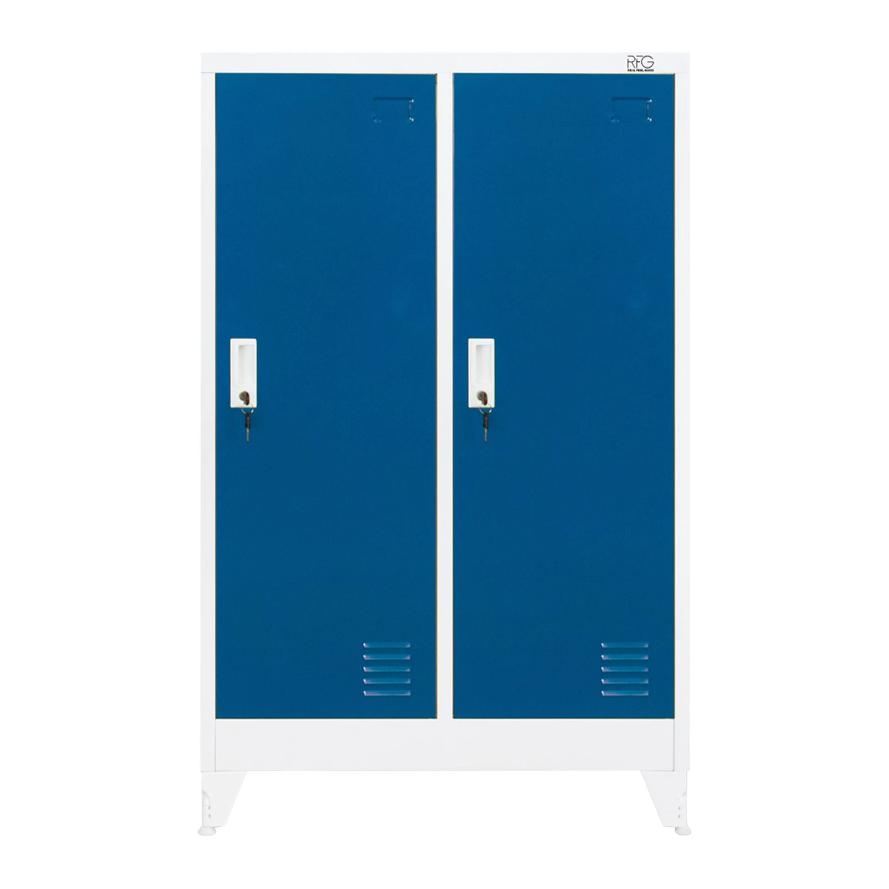 Гардероб RFG, метален, двоен, с две врати, 80 х 40 х 120 cm, бял, със сини врати