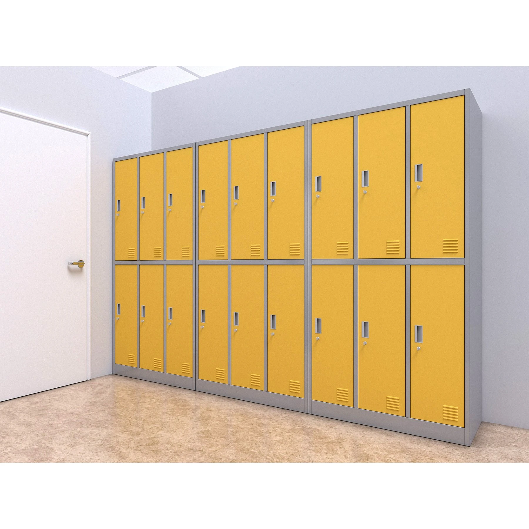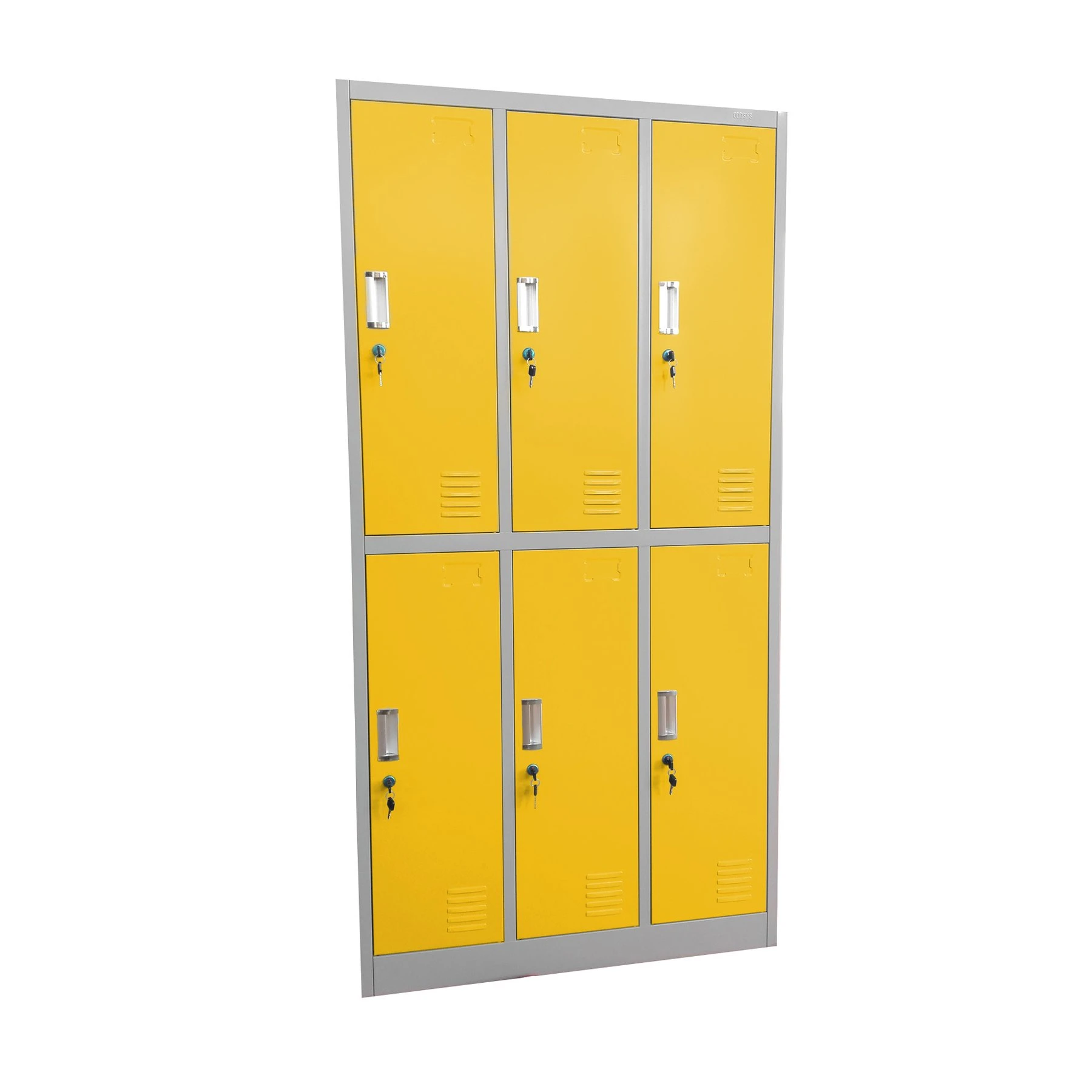 Гардероб RFG, метален, троен, с шест клетки, 90 x 45 x 185 cm сив корпус, врати с жълт цвят