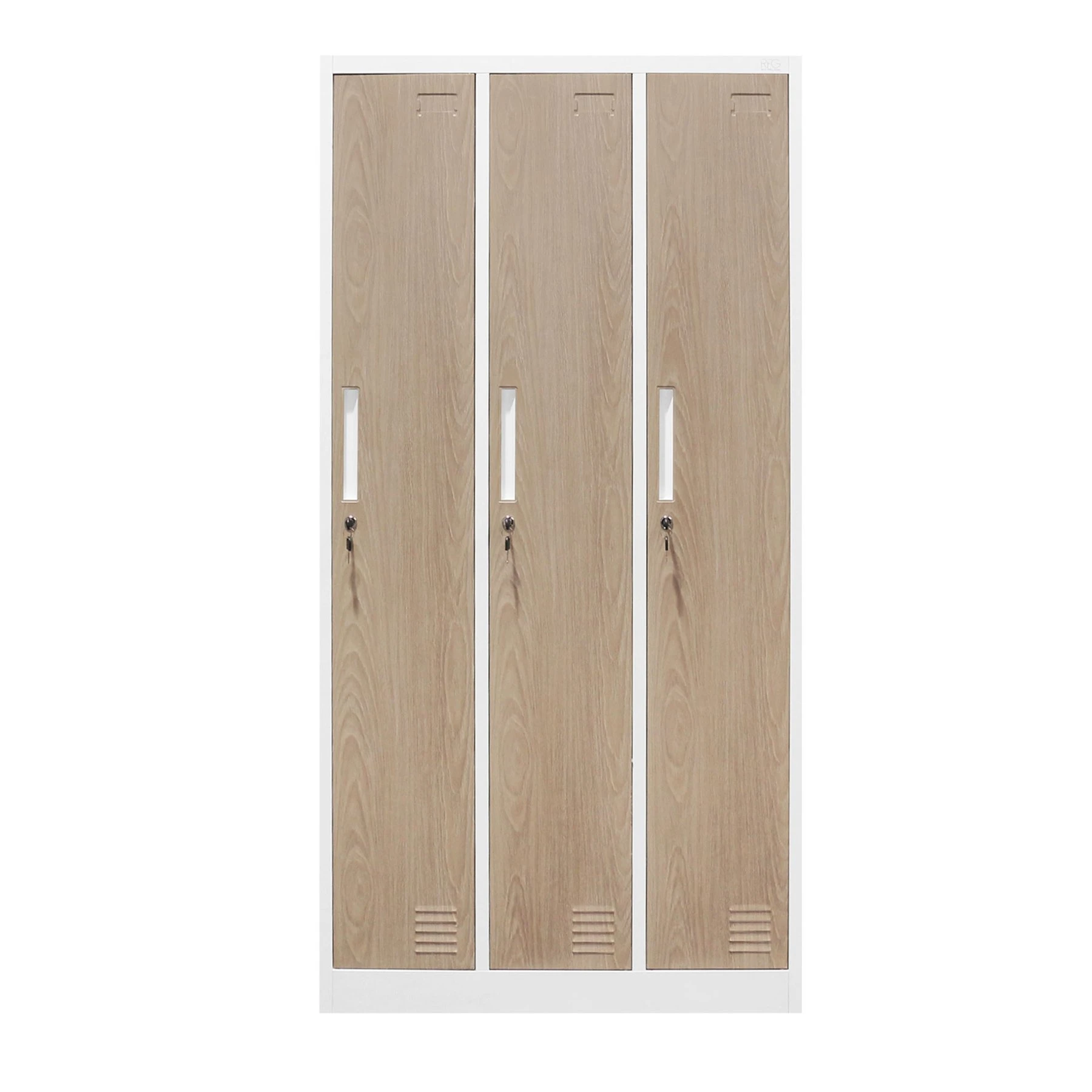 Гардероб RFG, троен, метален, с 6 врати, 900 х 450 х 1850 mm, кехлибарен дъб и бяло