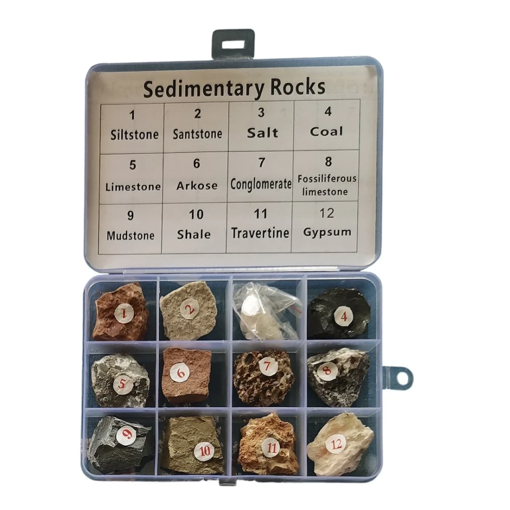 Комплектът съдържа 12 седиментни скали, поместени в практична кутия.