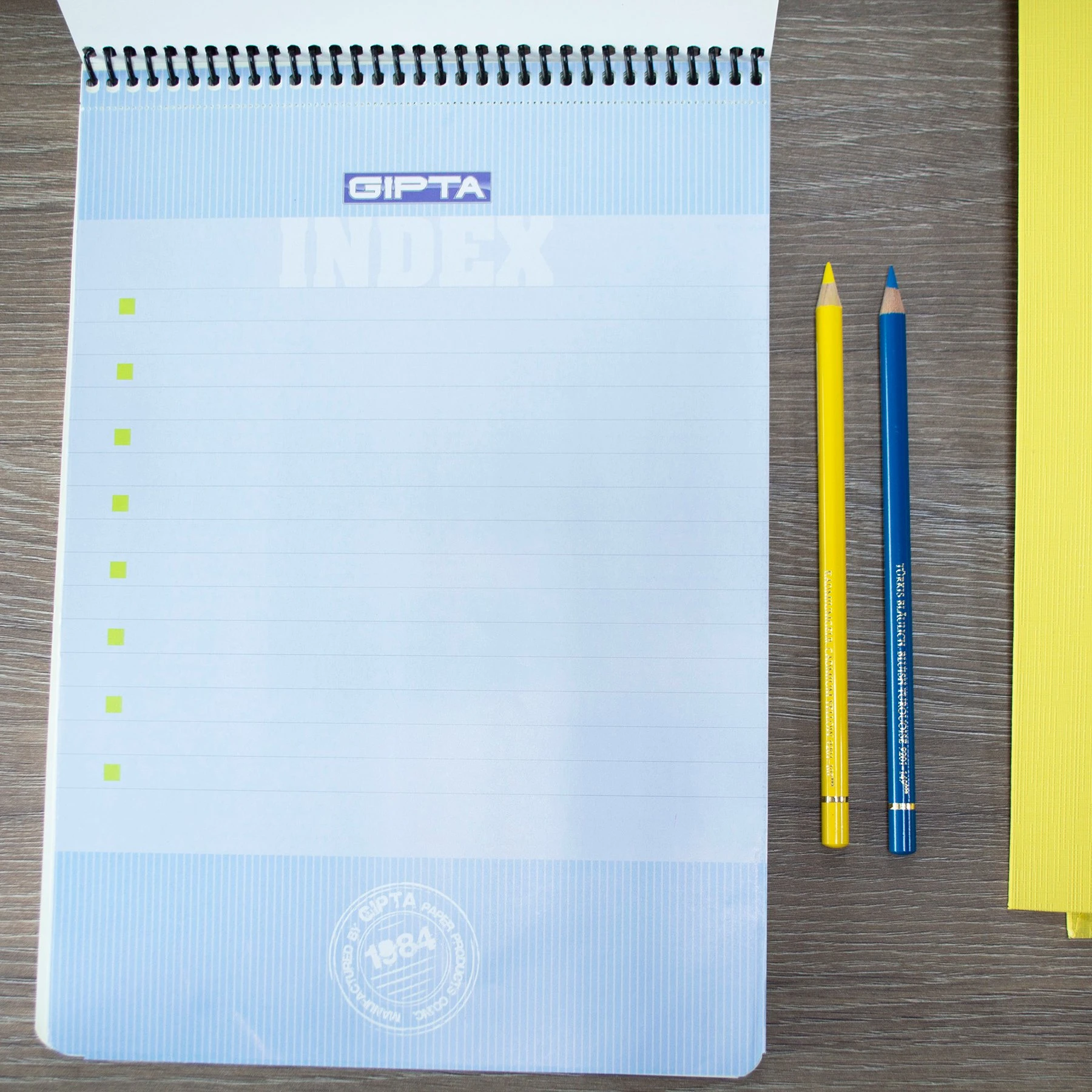 Произведен от висококачествена жълта офсетова хартия.