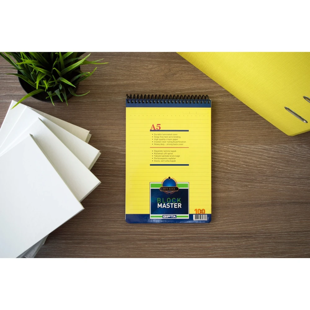 Gipta Block Master Пад, А5, жълт, широки редове, микроперфорация, със спирала, 100 листа