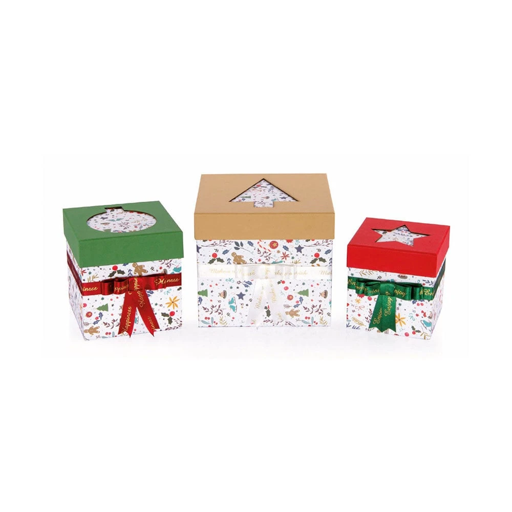 Gipta Подаръчна кутия New Year, с капак и панделка, 130 x 130 x 135 mm