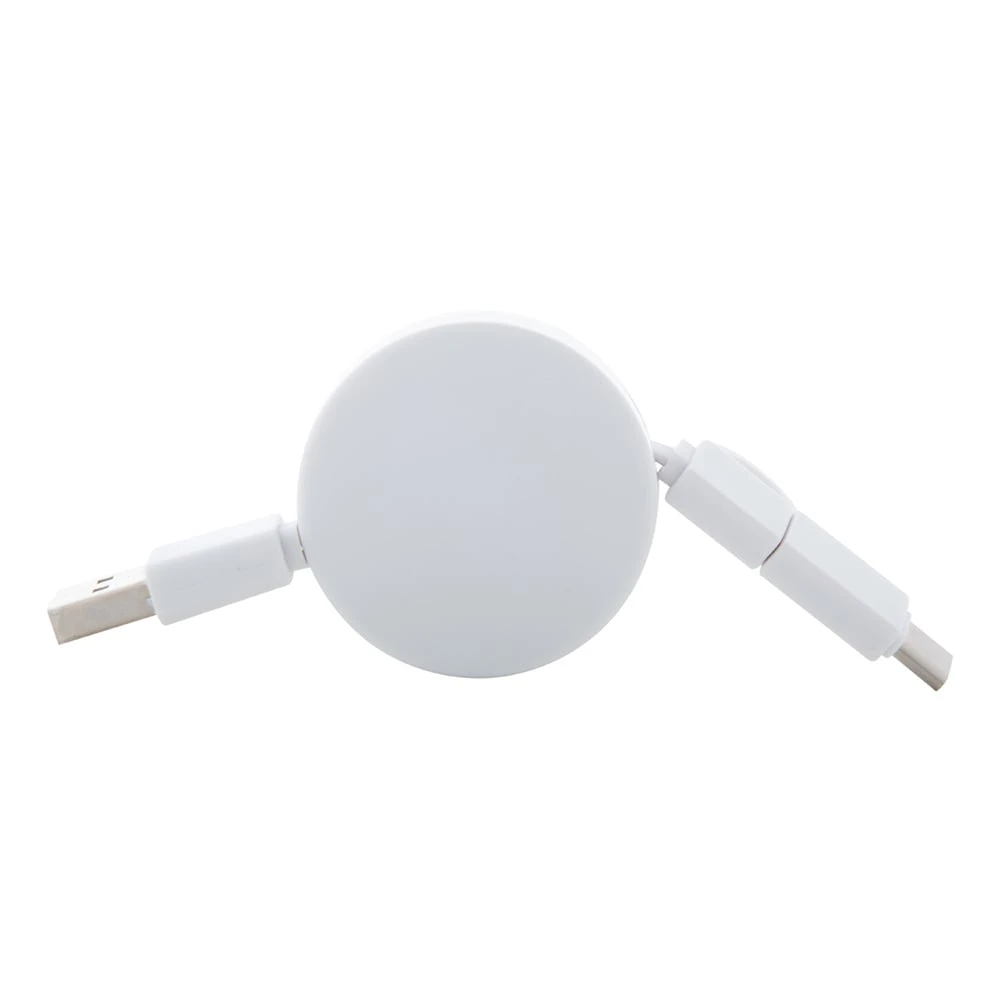 Телескопичен USB кабел за зареждане с бамбуков корпус и 3 конектора, подходящи за индивидуалните ви нужди.