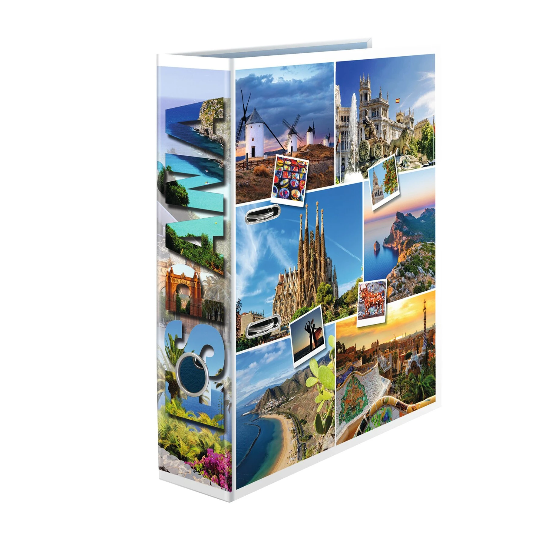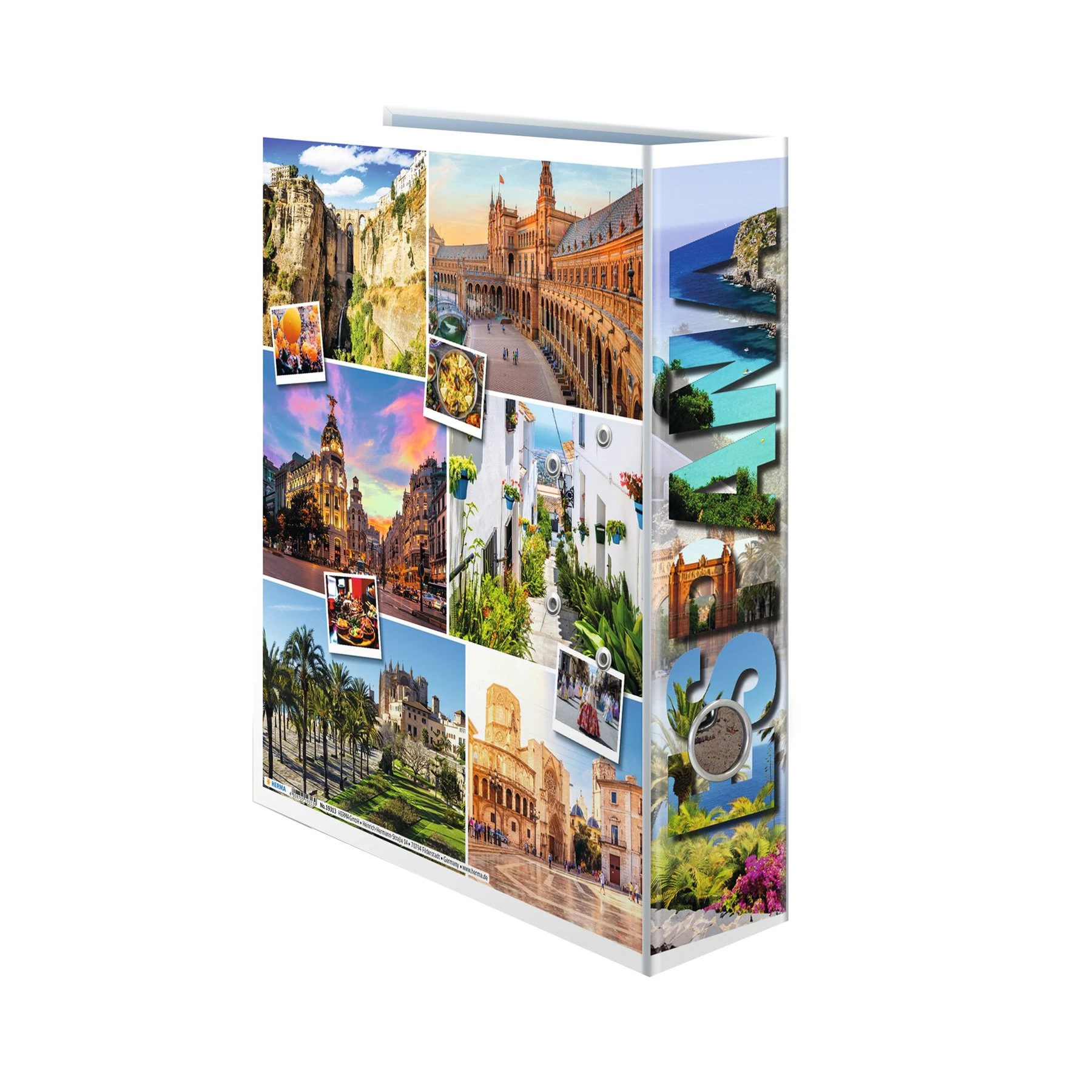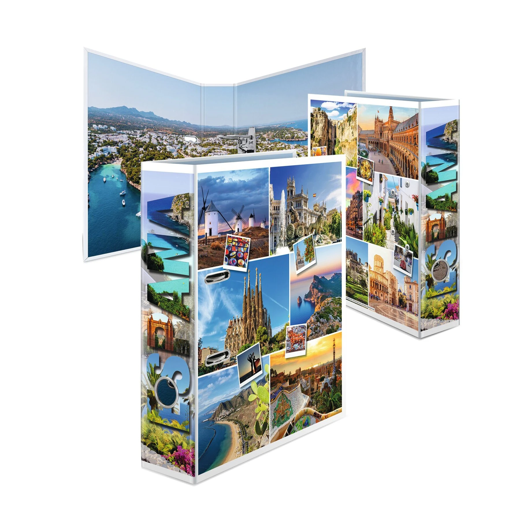 Класьор за документи „Испания“, отпечатан с много цветни снимки от Испания, красиви пейзажи, средновековни градове и Средиземно море.