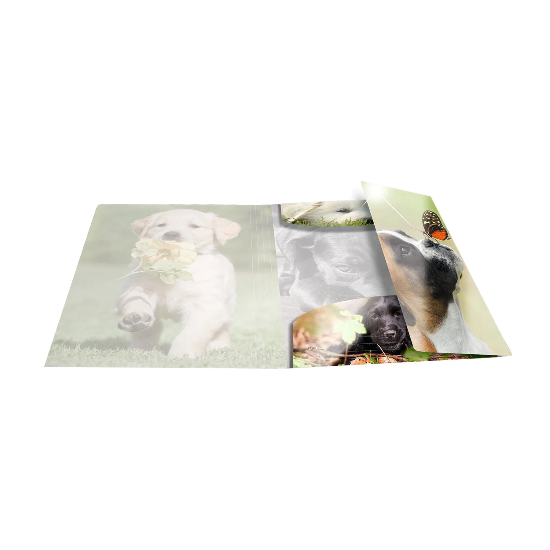 Папка с ластик „Кучета“, изработена от висококачествен полипропилен с гланцово покритие.