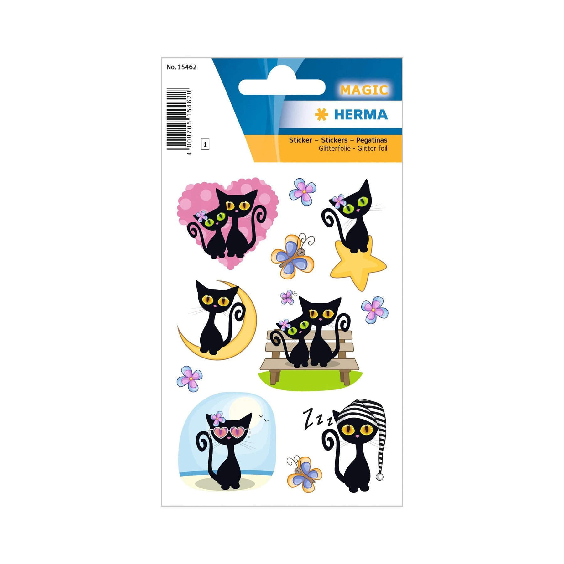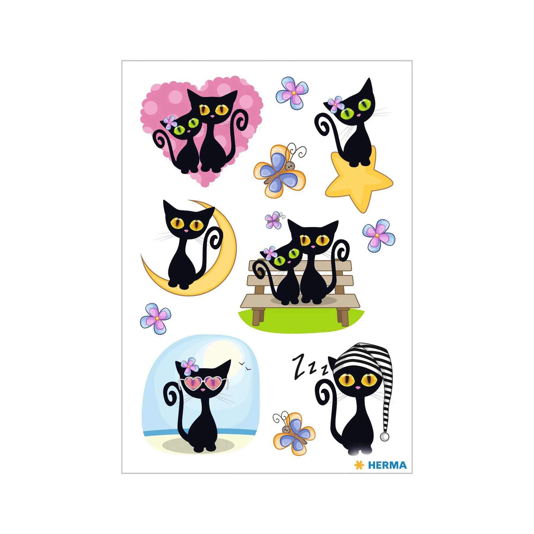 Herma Самозалепващи се етикети Черни котки, глитер, 1 лист