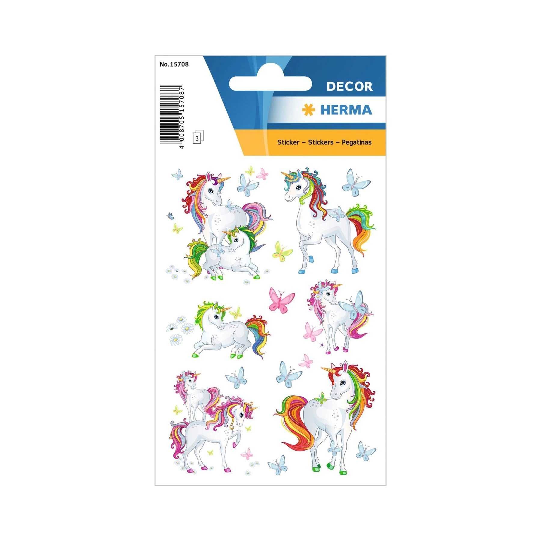 Herma Самозалепващи се етикети Еднорози, 3 листа
