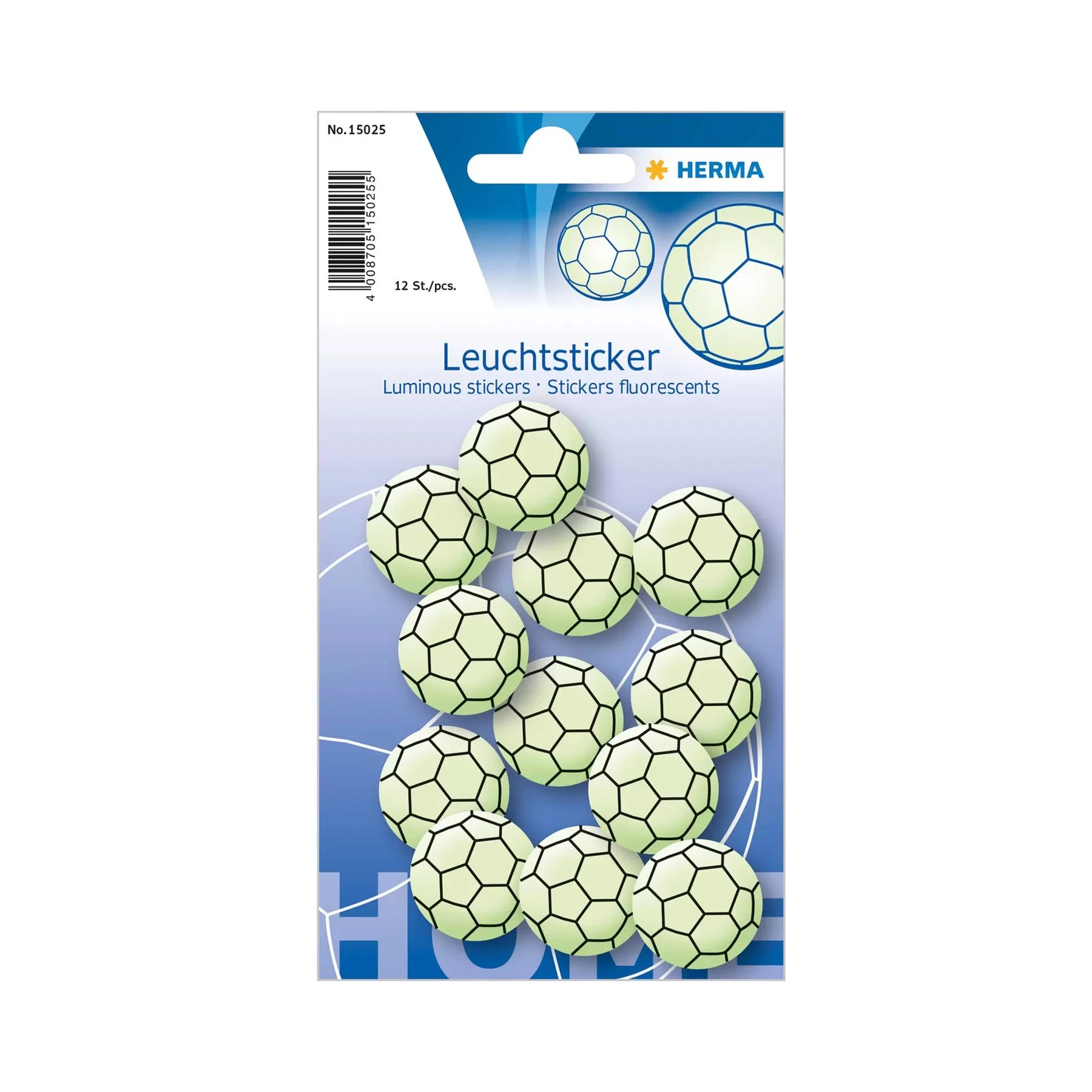 Herma Самозалепващи се етикети Футболна топка, светещи в тъмно, 12 броя