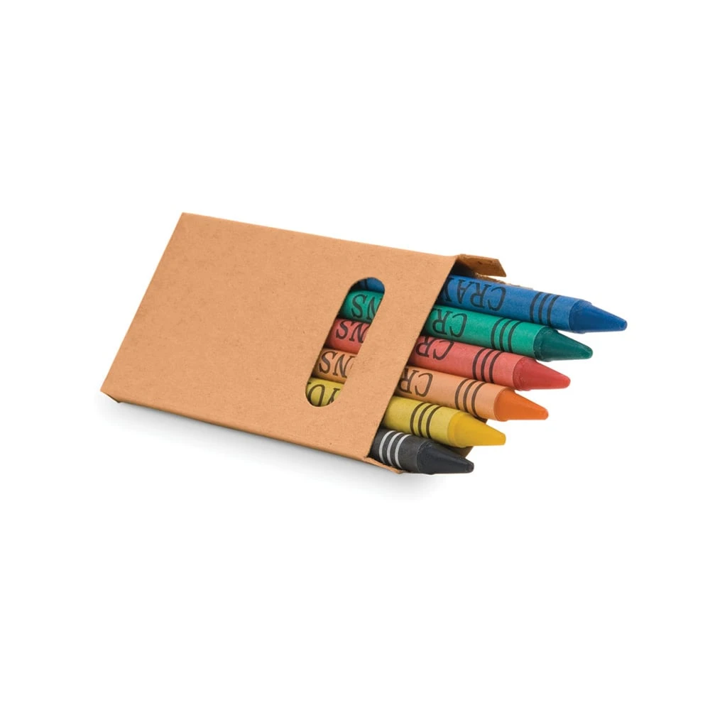 6 разноцветни пастела, поместени в картонена кутия с възможност за персонализиране и брандиране.