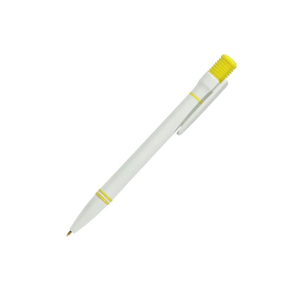 Пластмасова химикалка със сменяем пълнител и възможност за надписване.