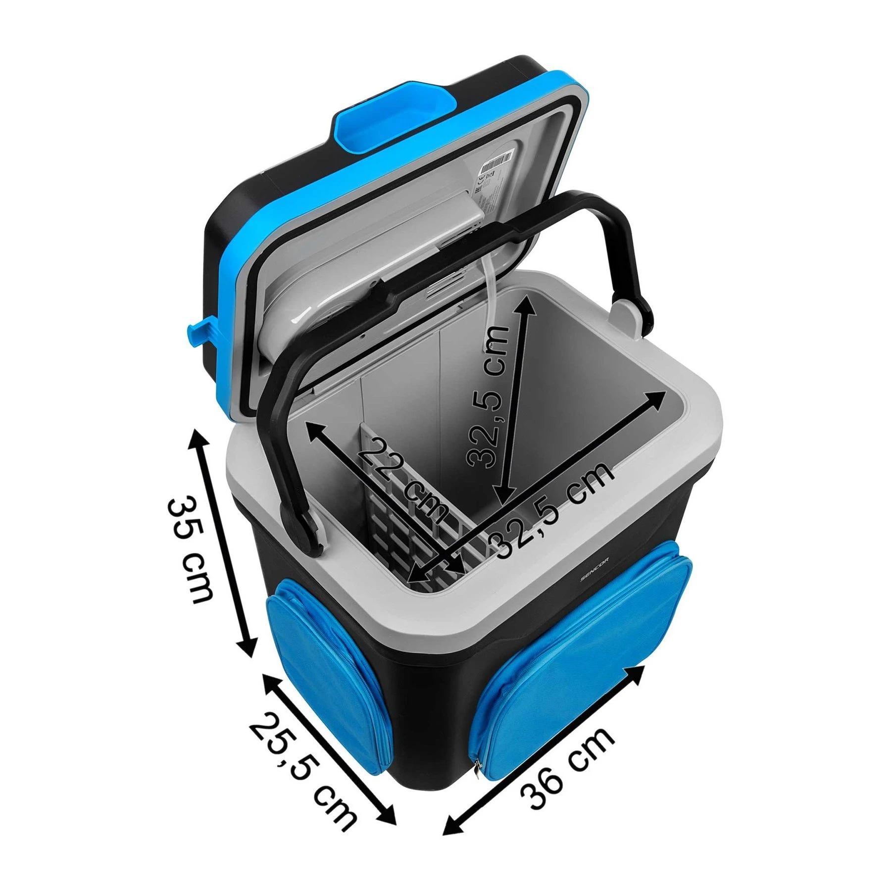 Разполага с практични джобове около корпуса, за храни, които не се нуждаят от охлаждане.