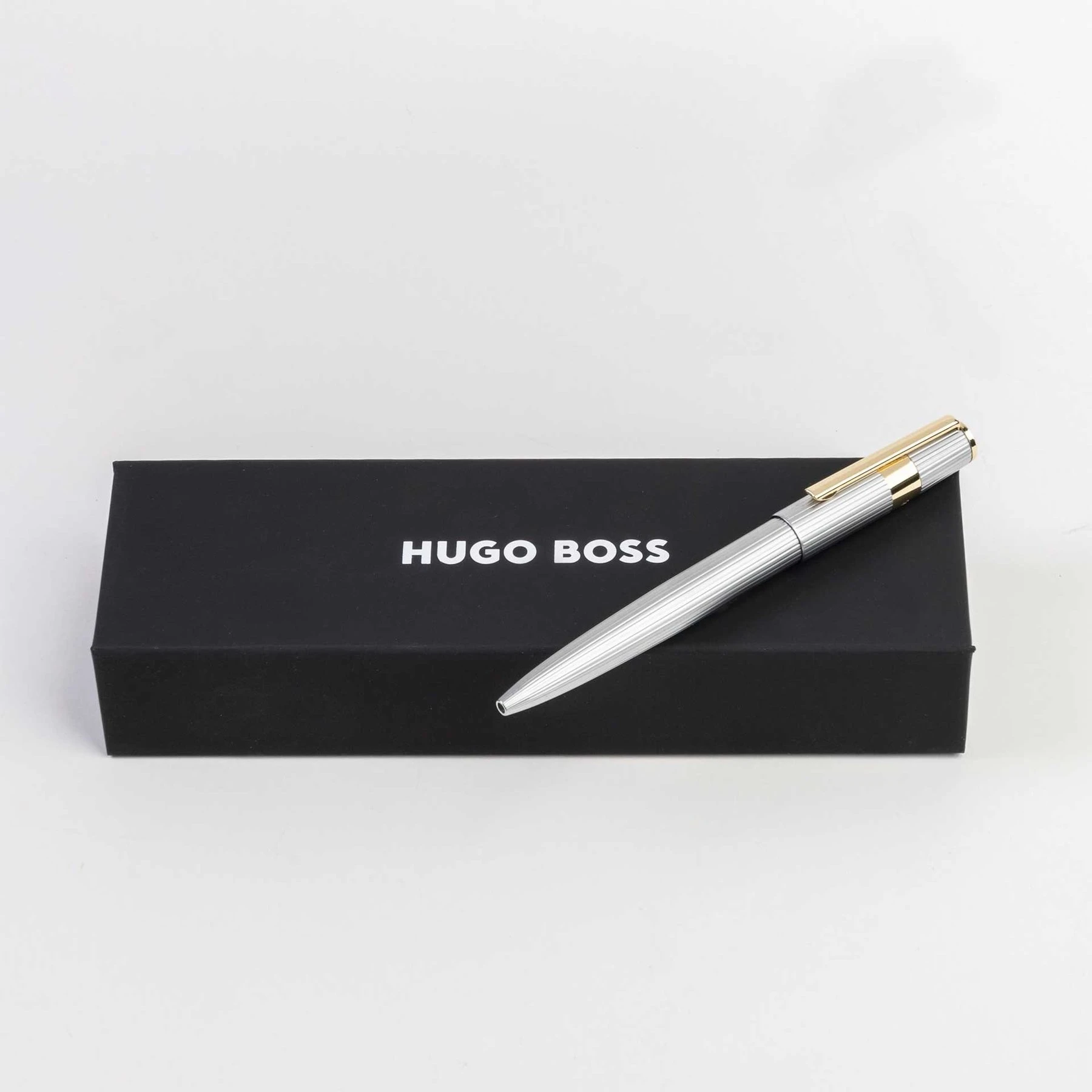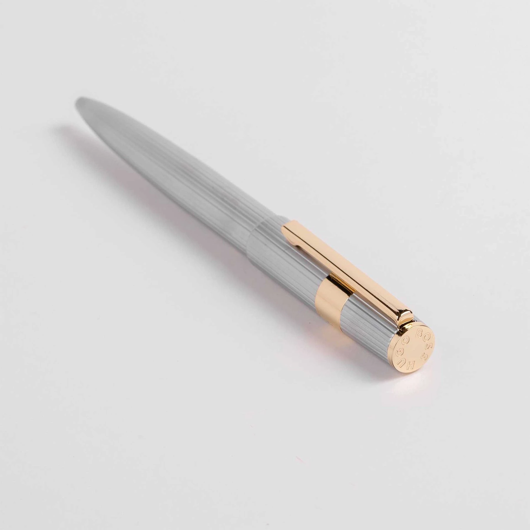 Hugo Boss Химикалка Gear Pinstripe, в кутия, сребристо-златиста
