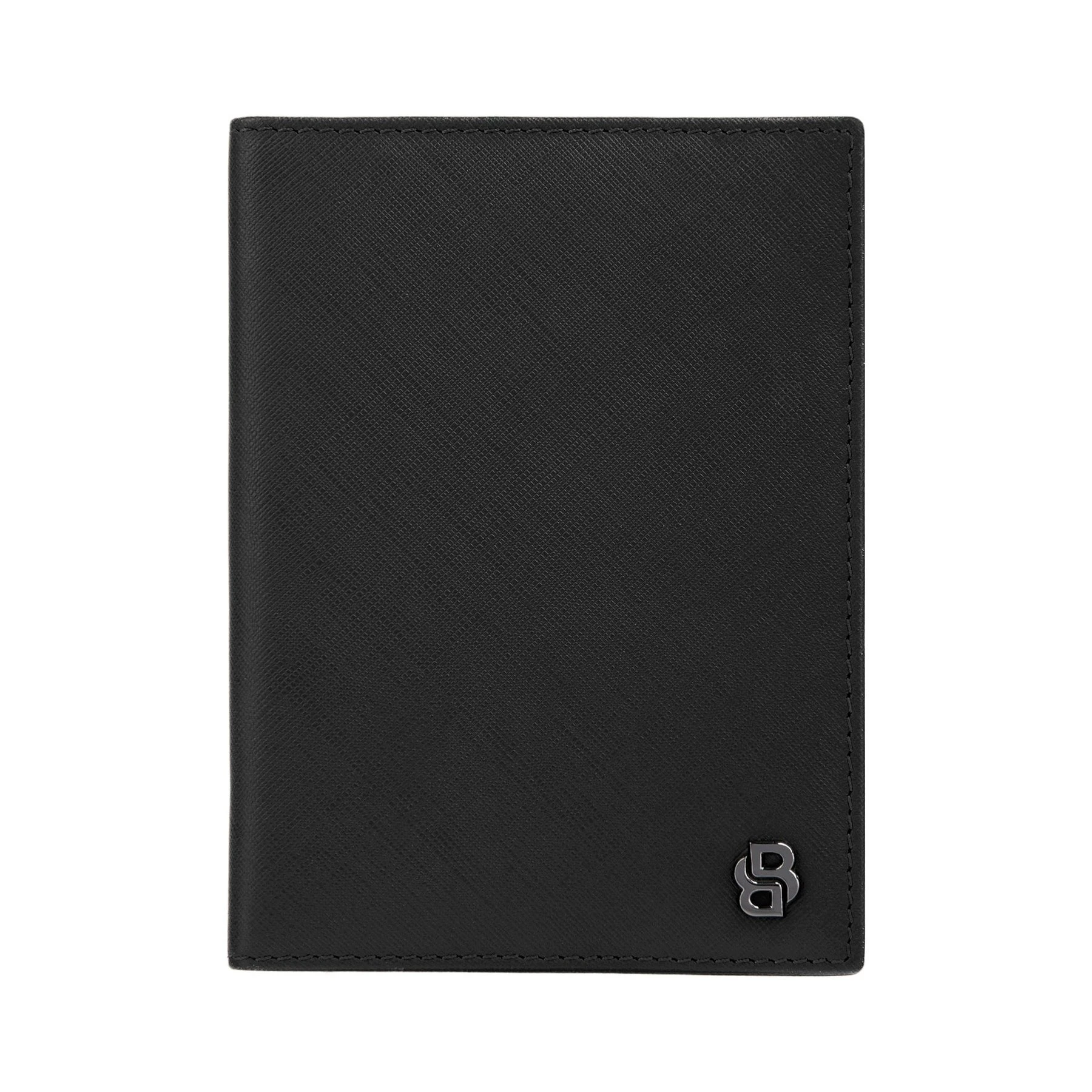 Линията Double B Saffiano е създадена от висококачествена естествена кожа с фин матов сафияно релеф, който придава модерно и изискано усещане за лукс. Всеки продукт е внимателно изработен и завършен с характерната метална плочка Double B в дълбоко gunmetal покритие — отличителен детайл, който подчертава съвременната естетика на колекцията. Този стилен калъф за паспорт предлага добре организирано вътрешно разпределение с отделение за паспорт, слот за банкноти и четири слота за карти — идеалният баланс между практичност и елегантен минимализъм.