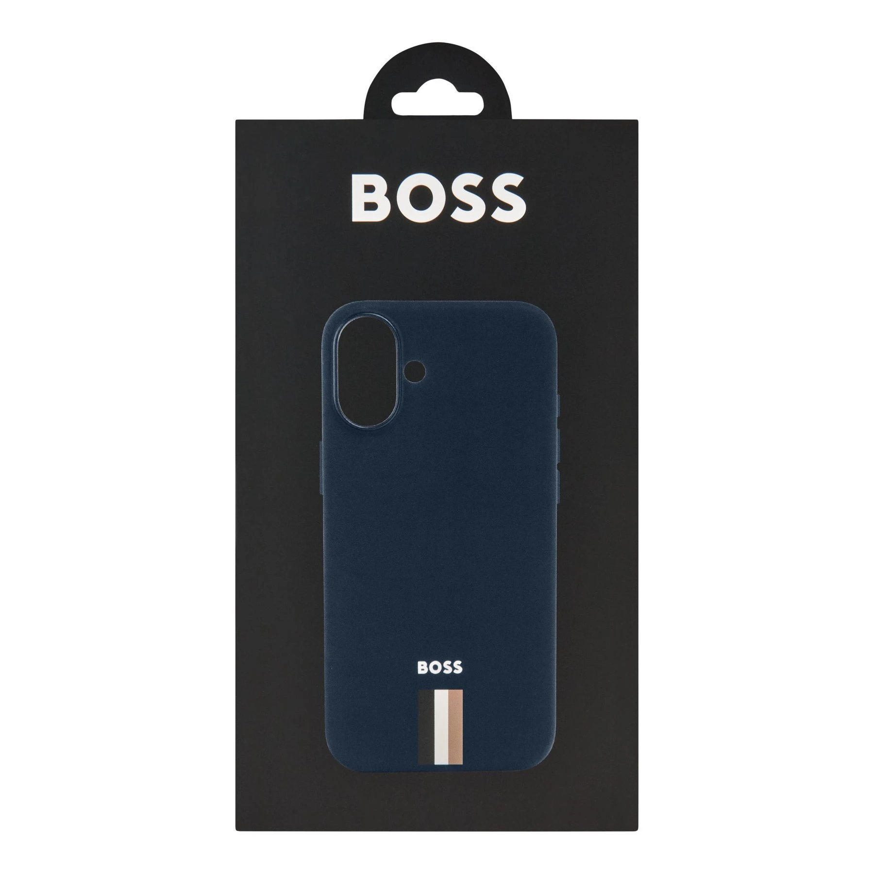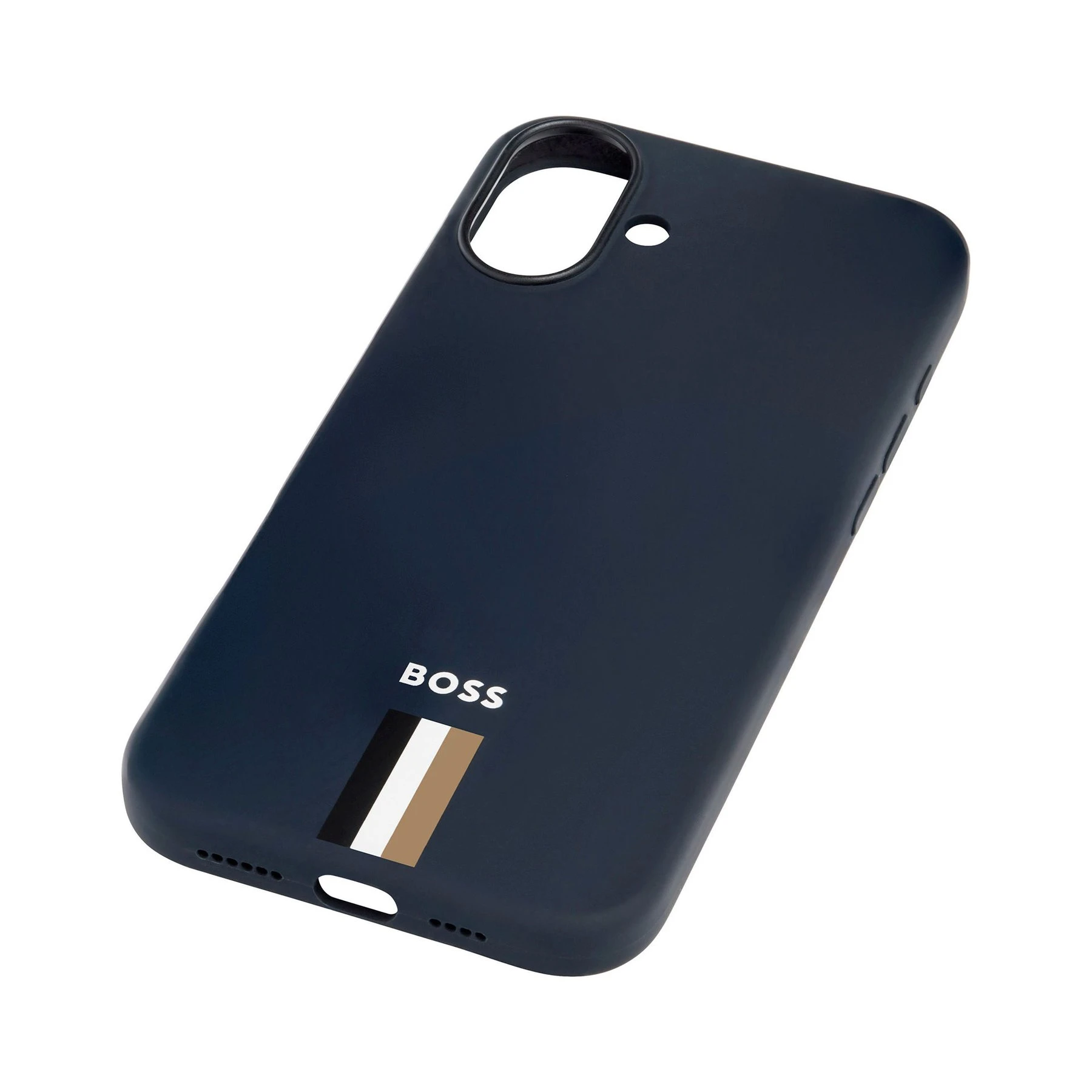 Стилен и изчистен калъф с тъмносиня матова текстура, акцентиран с емблематичното трицветно знаме и логото на BOSS. Той съчетава минималистичен дизайн, надеждна защита и съвместимост с магнитно бързо зареждане, като е създаден специално за iPhone 16 Plus.