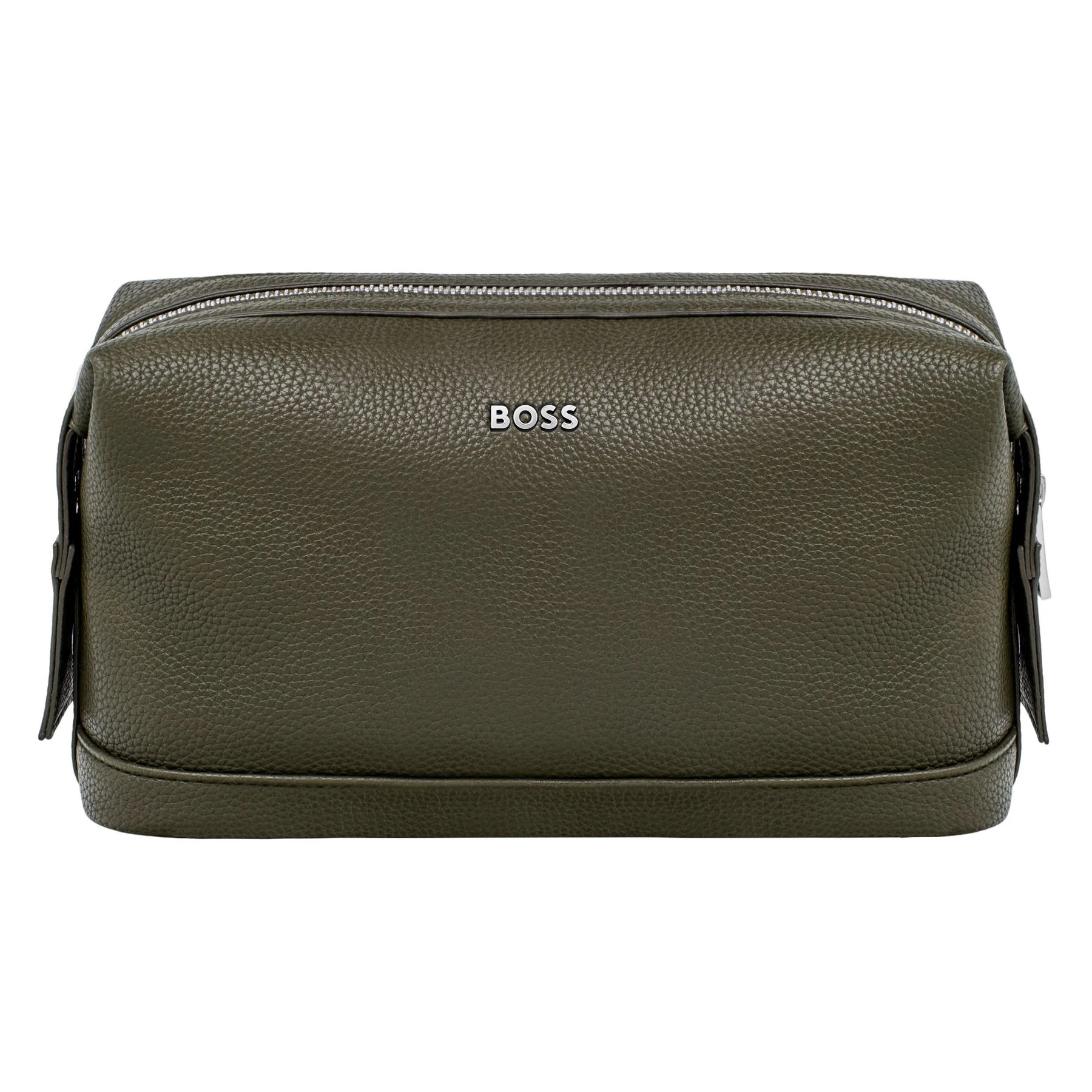 Козметичният несесер Grained Classic е изработен от висококачествен материал с мека текстура, наподобяваща естествена кожа, и е завършен с елегантна хромирана плочка с логото BOSS и координирани хромирани ципове. Фини детайли като монохромната подплата подчертават изтънченото му изпълнение. Създаден за удобно съхранение и лесно пътуване, моделът съчетава практичност и стил.