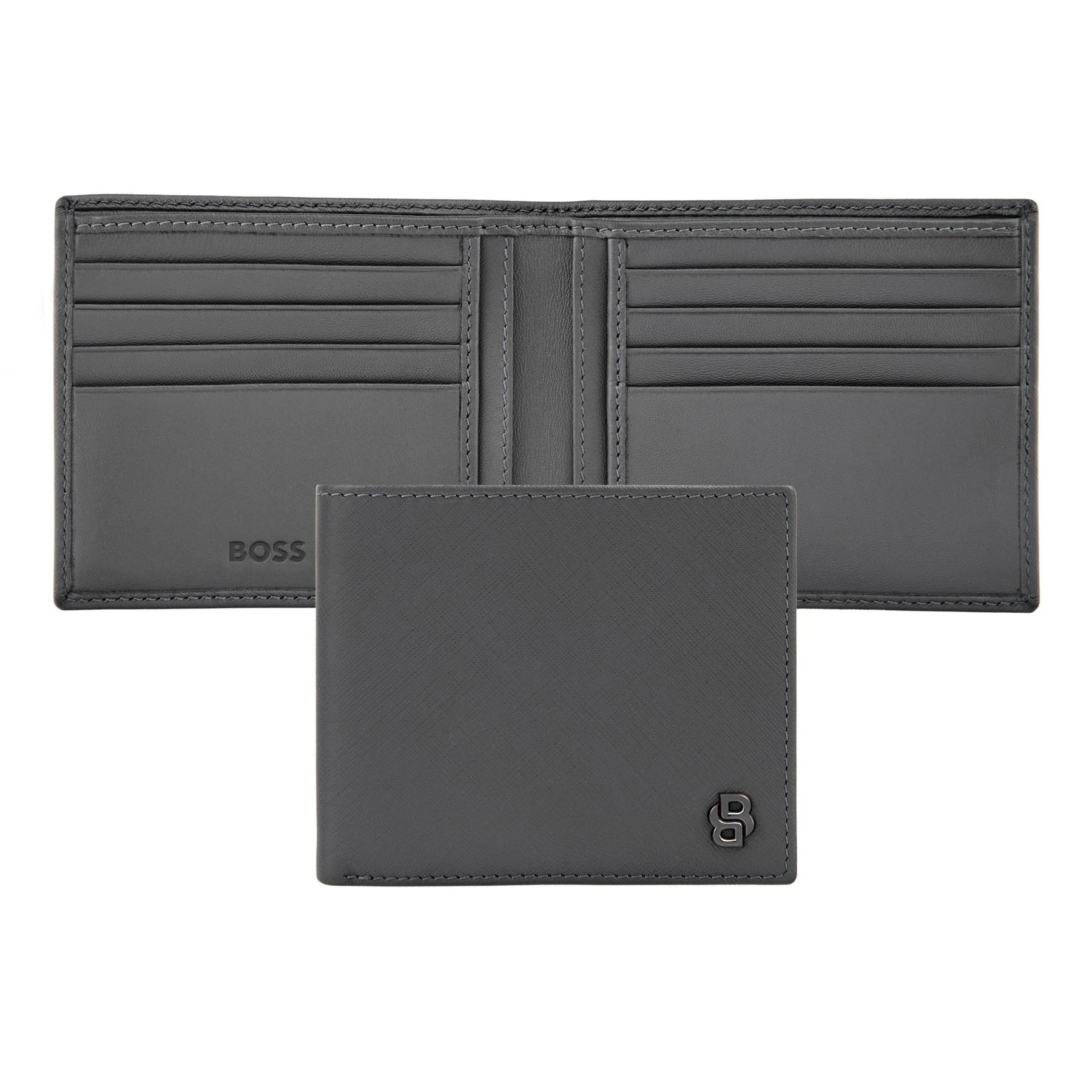 Линията Double B е изработена от висококачествена естествена кожа с фин сафияно релеф в матово изпълнение, който придава изискан и модерен луксозен характер. Всеки детайл е прецизно конструиран и завършен с новата метална плочка Double B в дълбоко gunmetal покритие — отличителен и съвременен акцент, характерен за серията.
