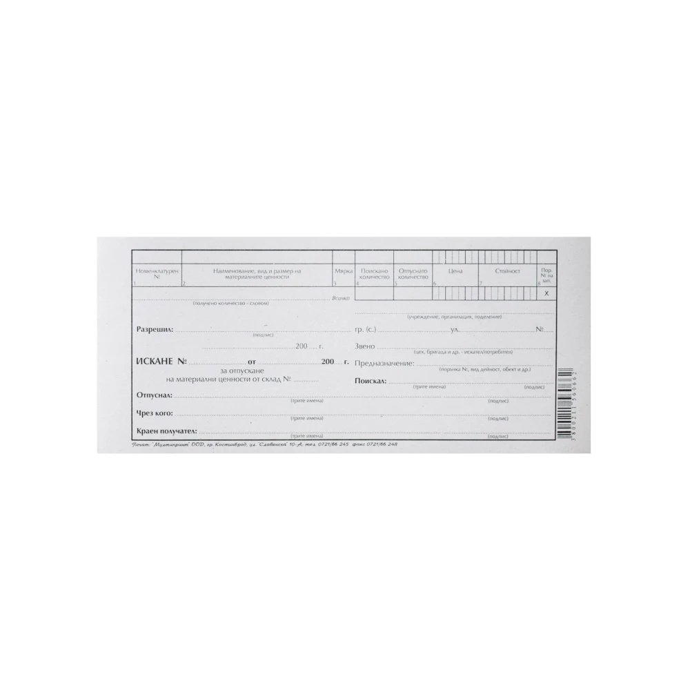 Искане за отпускане на материални ценности, 1 ред, 100 листа