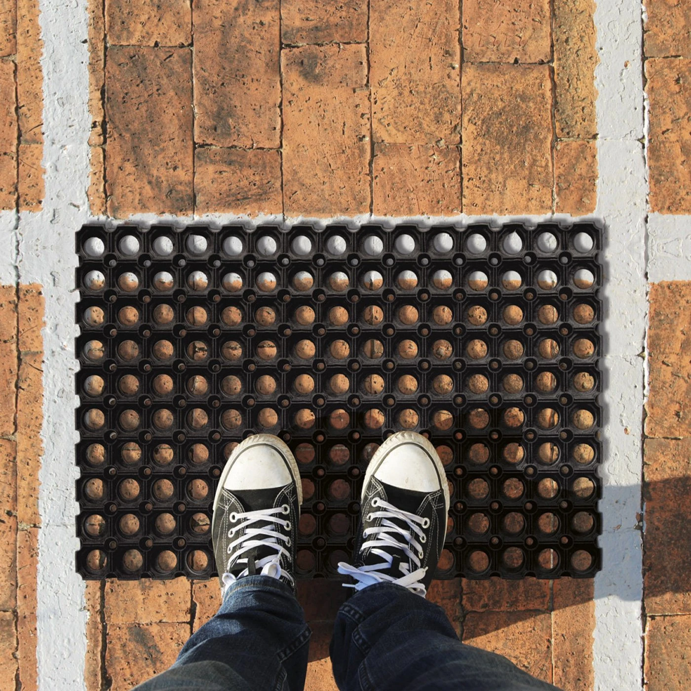 Структурата на пчелна пита, с повдигнато и подпряно дъно, прави тази изтривалка дренираща, хигиенична и лесна за измиване с вода.