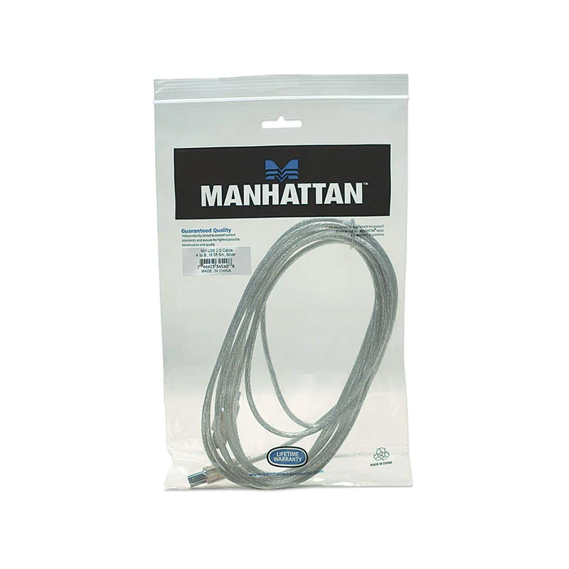 Кабел Manhattan, USB 2.0 A Male/USB 2.0 B Male, 5 m, USB Type A, USB Type B