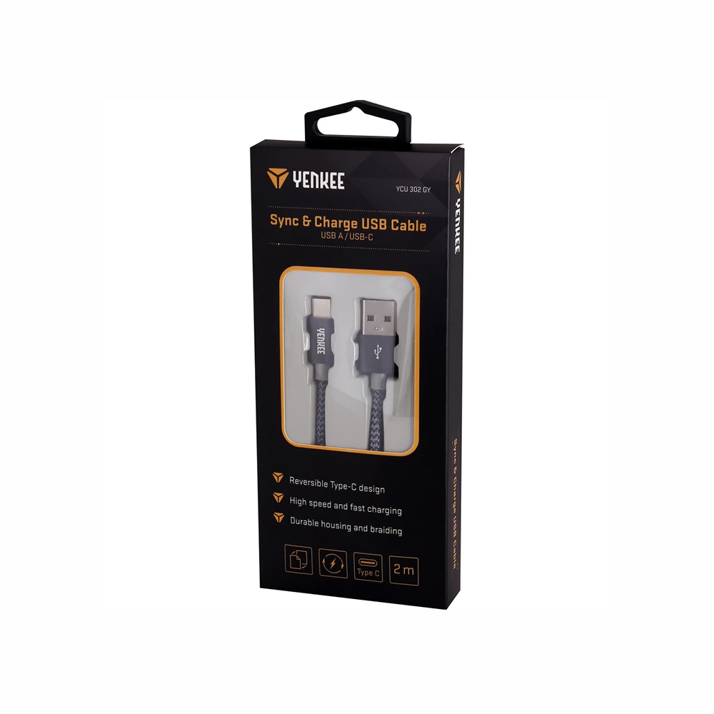 Кабел Yenkee 302 GY, USB-A Male към USB-C Male, 2 m, USB Type-A, USB Type-C, сив